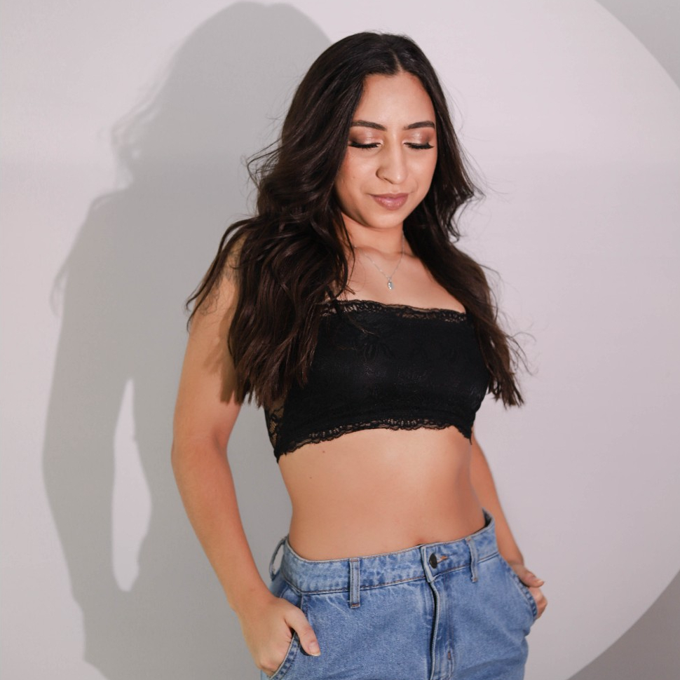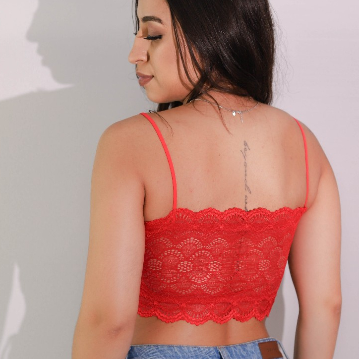 Top Cropped Faixa sem bojo Renda Moda Blogueira