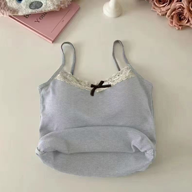 Top De Camisola De Damasco Doce Com Gravata Borboleta – Sexy Preto Slim Fit Sem Costas Para Camadas De Verão E Uso Exter