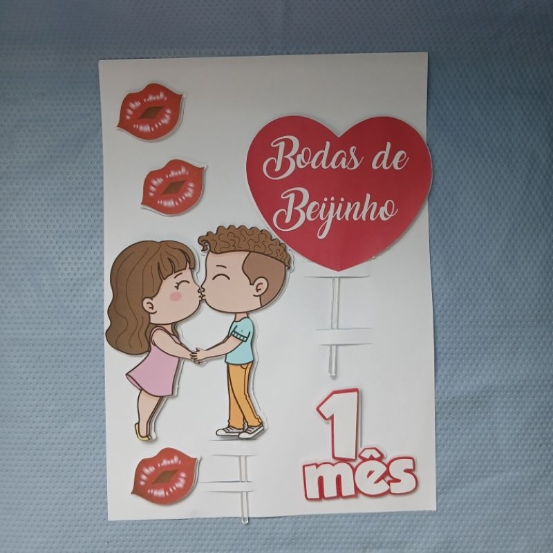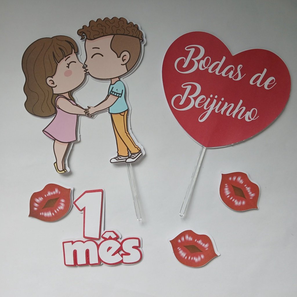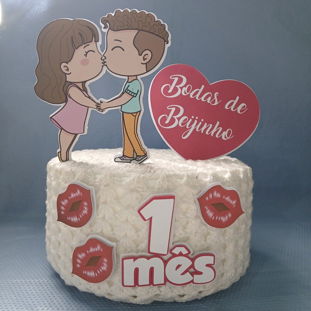 Topo de bolo Namoro - 1 mês de namoro - Bodas de beijinho-Entrega Imediata