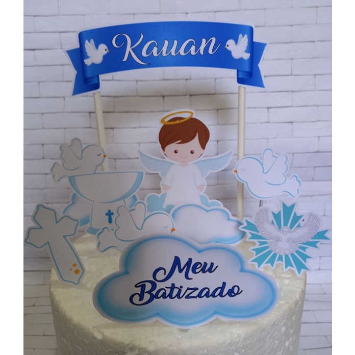 Topo de bolo personalizado Tema Batizado/ Topper de bolo/ personalizados/kit festa em casa