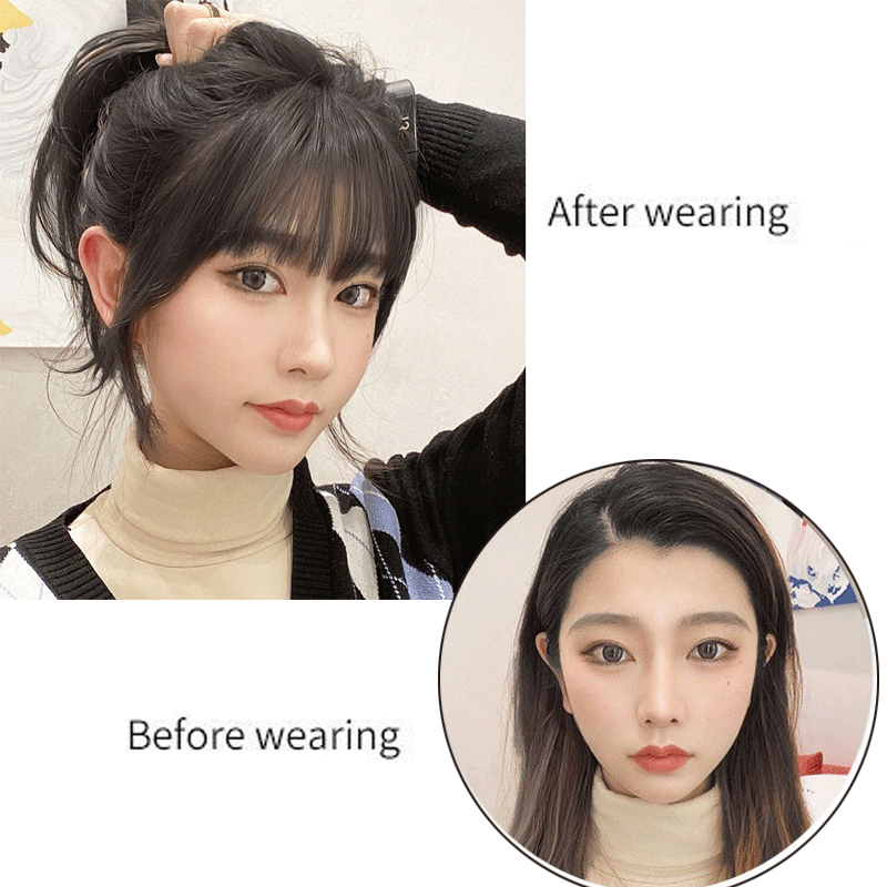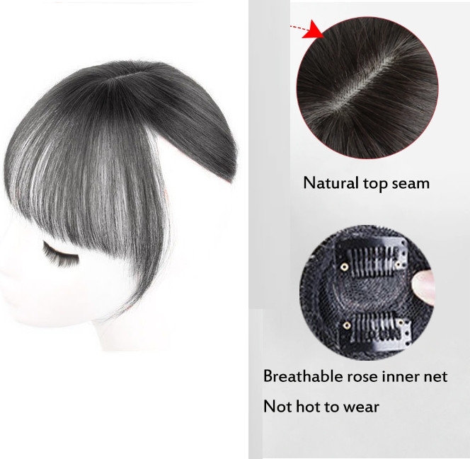Topper De Cabelo Preto Natural De 12 " – Franja Fofa Com Clipe Para Mulheres , Peça De Invisível Sintética