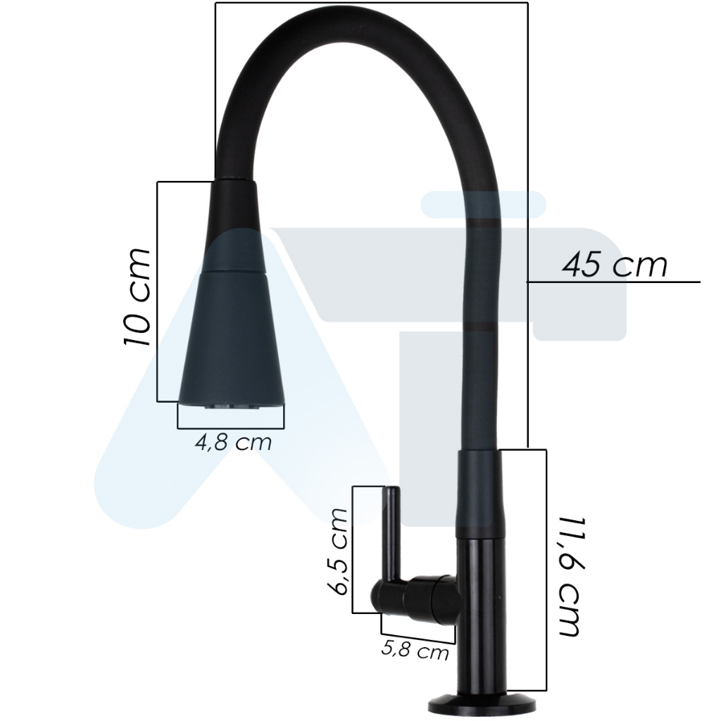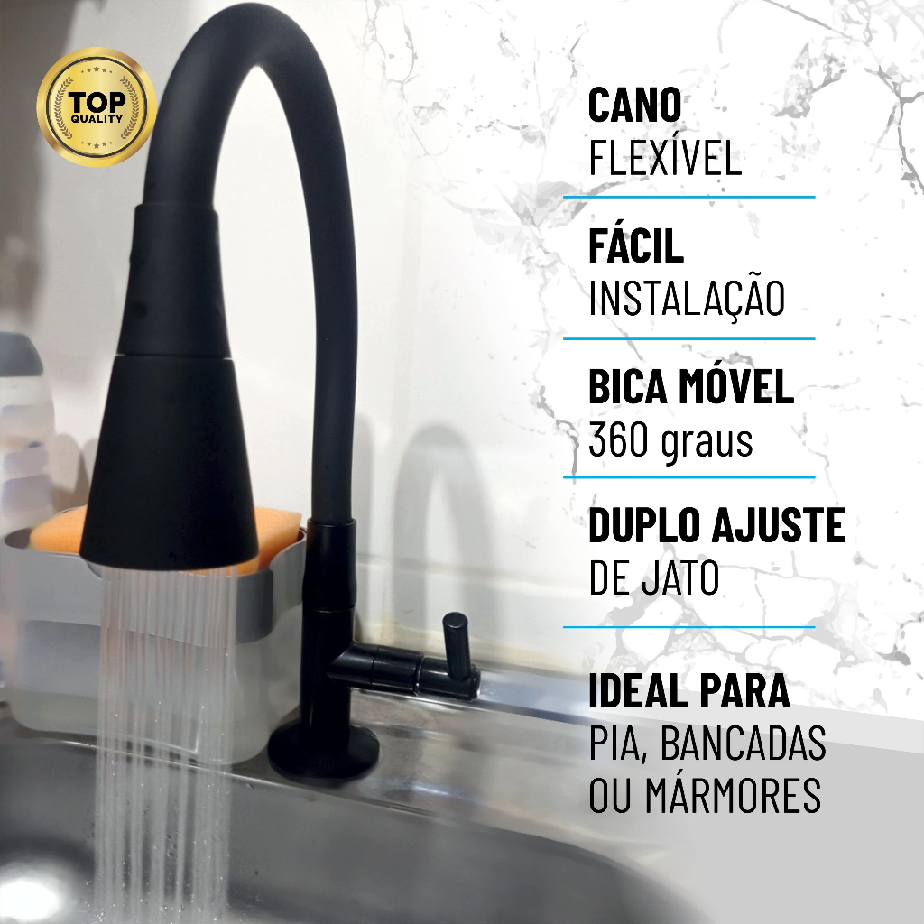 Torneira Bancada Cozinha Gourmet Preta Flexivel 2 Jatos 1/4 de volta para mesa pia bancada e mármore