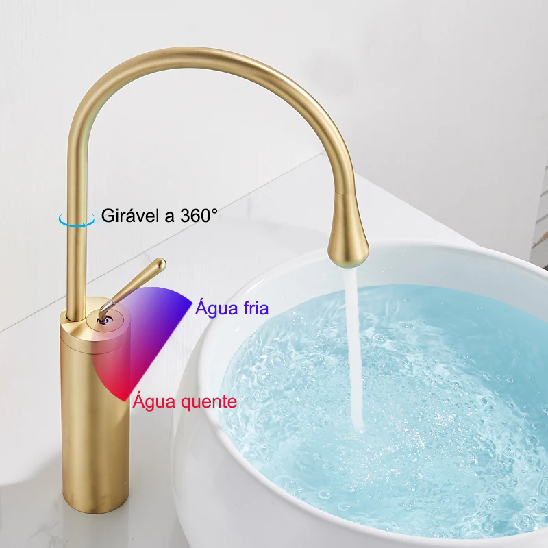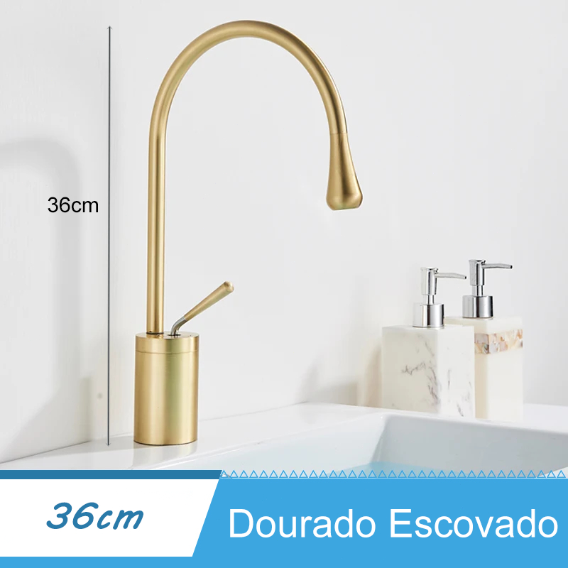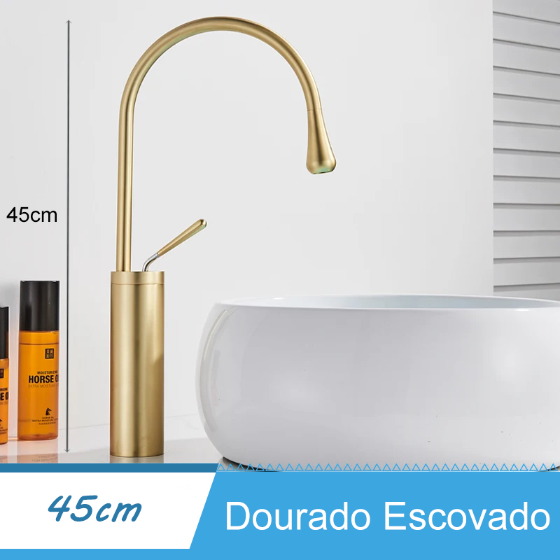 Torneira Banheiro Lavabo Dourada Matte Bancada Torneira Água Quente E Fria