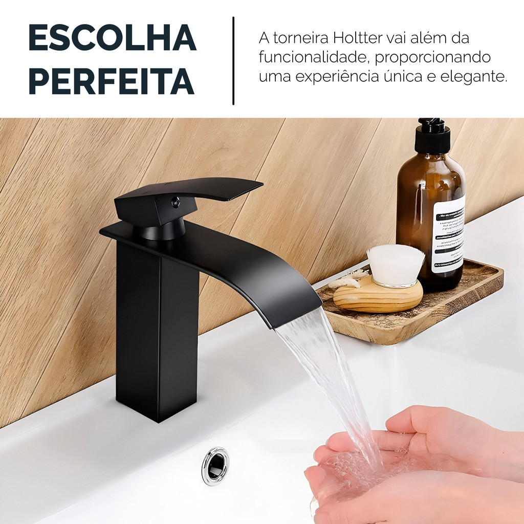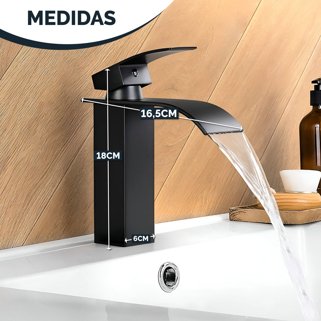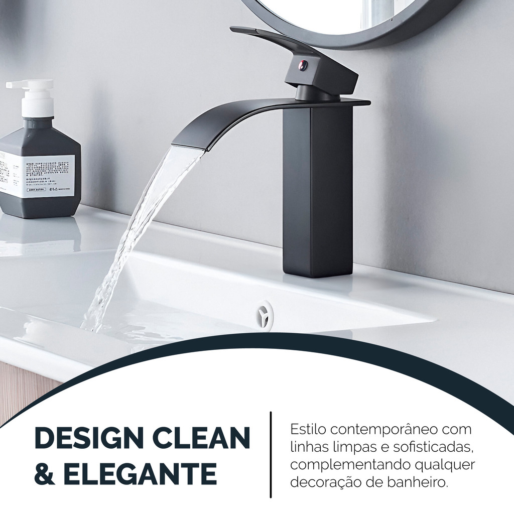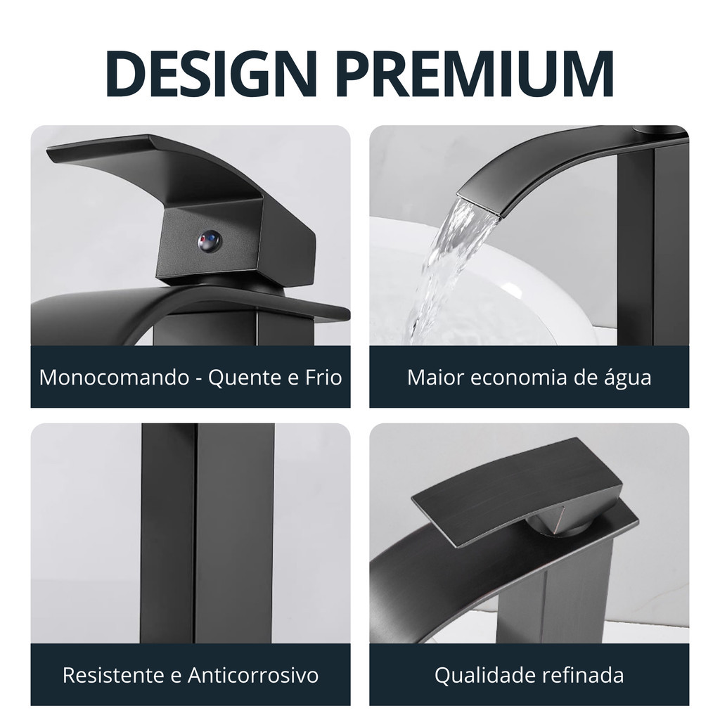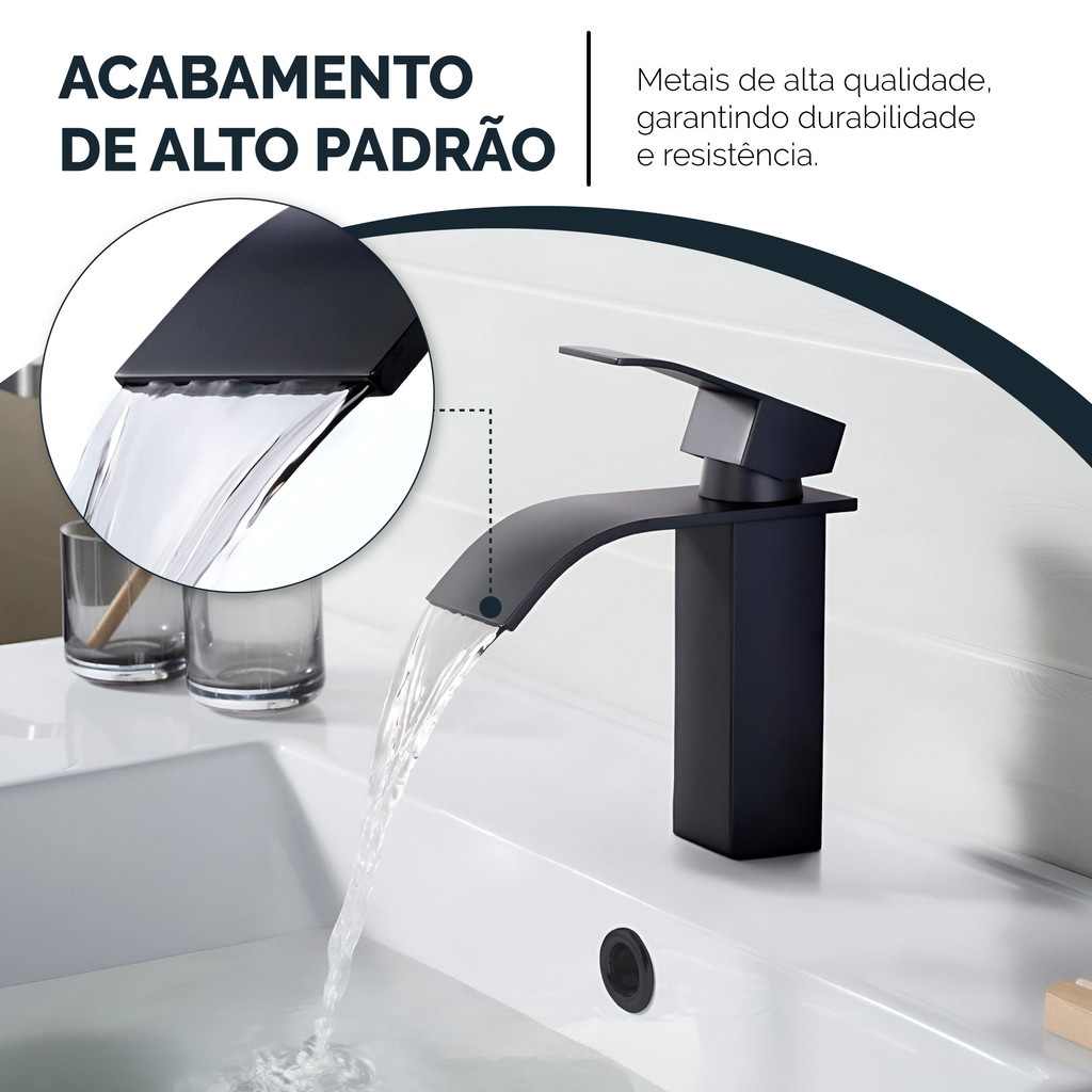 Torneira Banheiro Preta Fosca Cascata Misturador Monocomando Bica Baixa Quente e Fria Luxo Lavabo Cuba