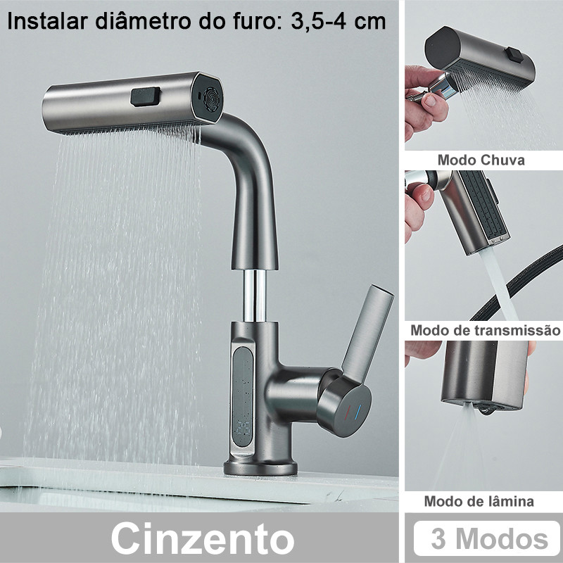 Torneira Cascata Para Misturador De Banheiro Com Alça Única Qaulidade 3 Modos Inteligentes