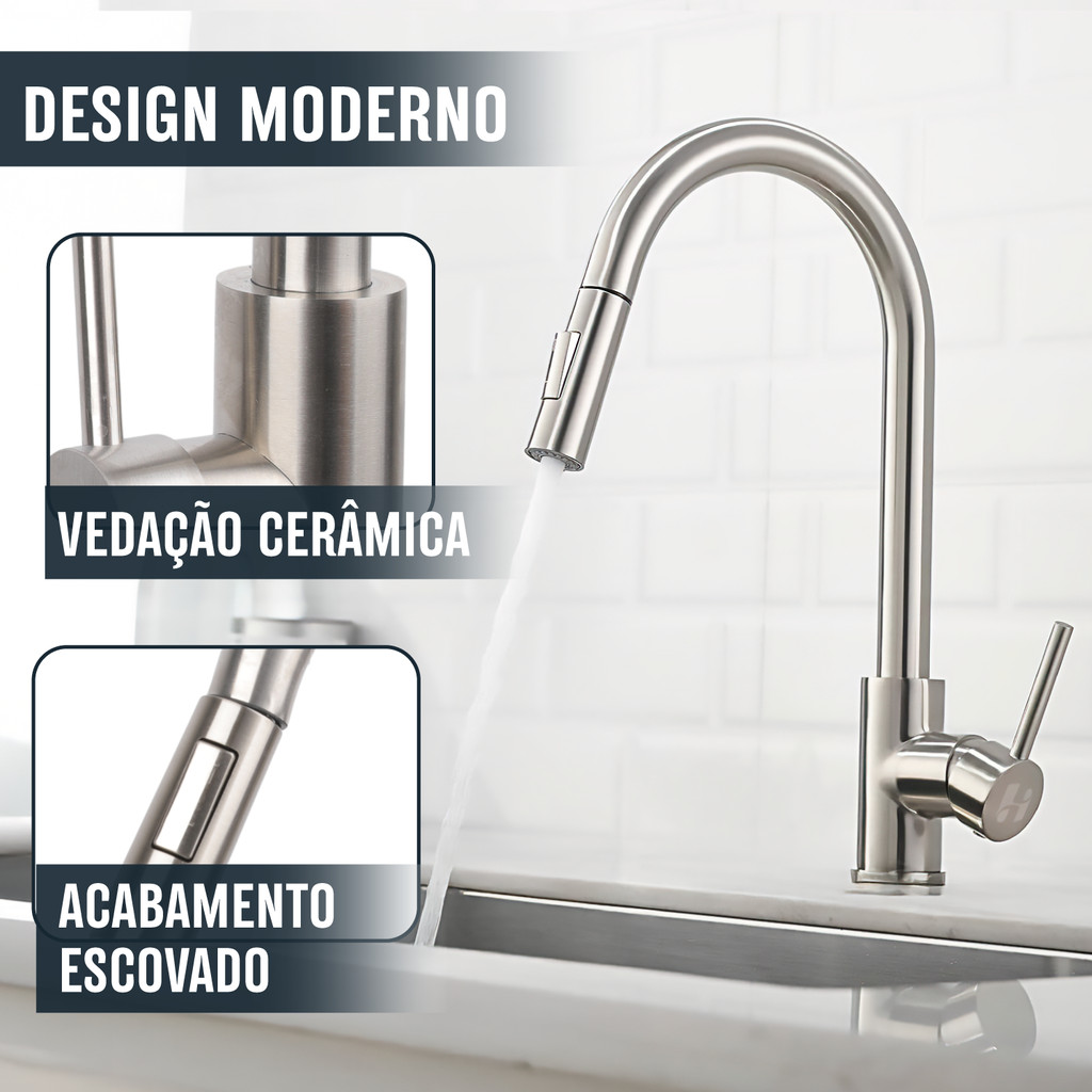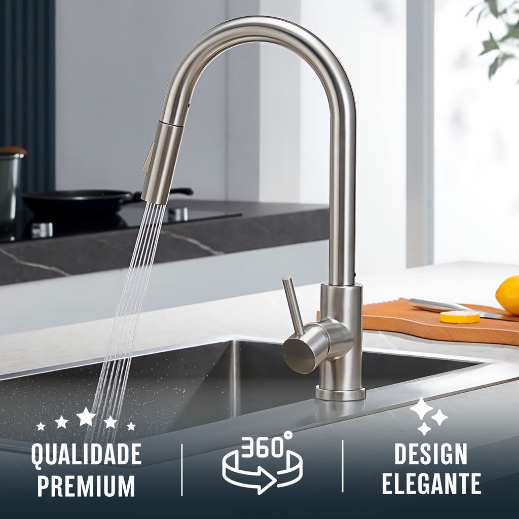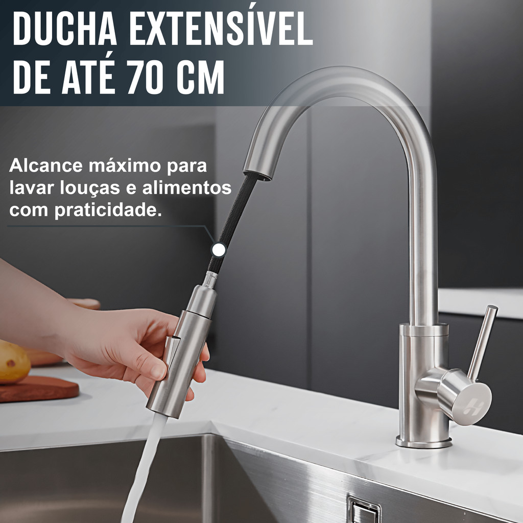 Torneira Cozinha Gourmet Misturador Monocomando Prata Extensora