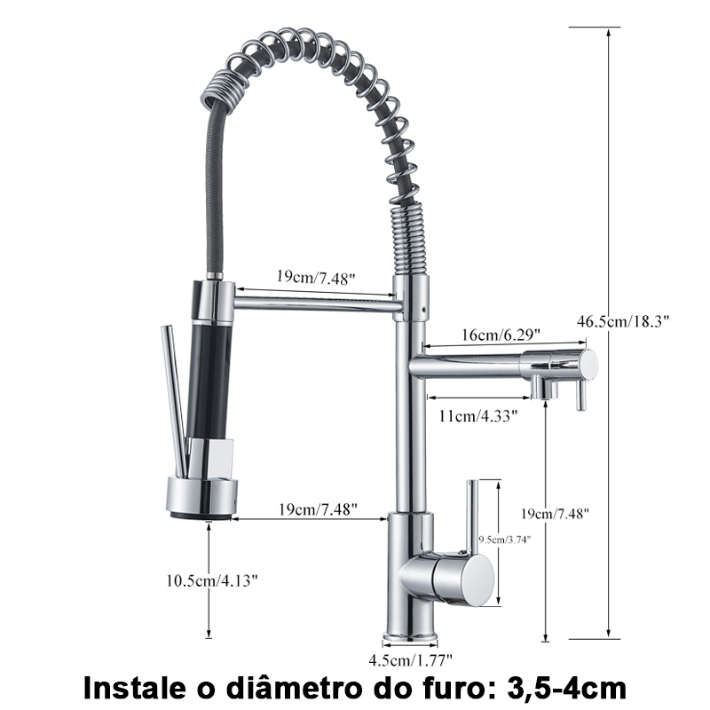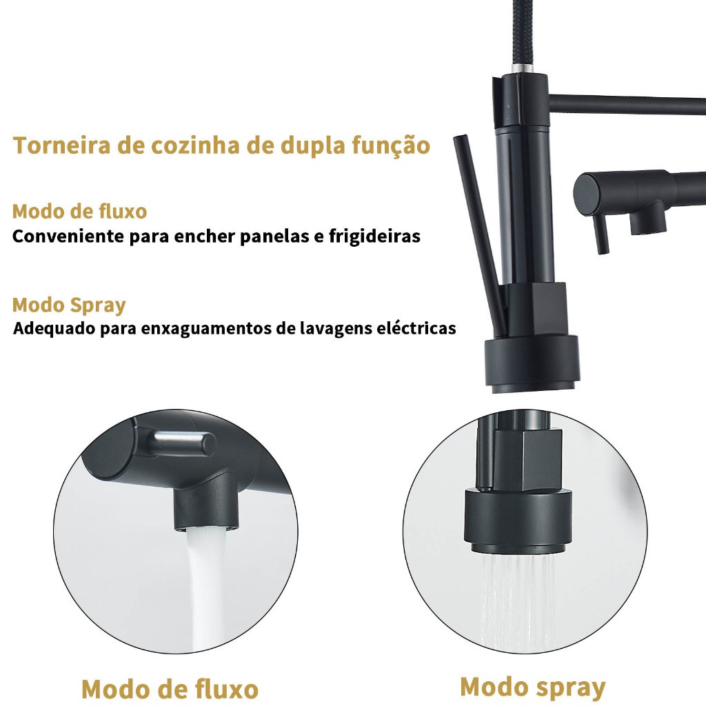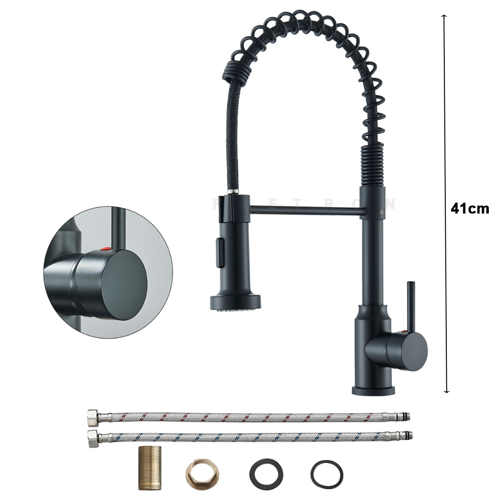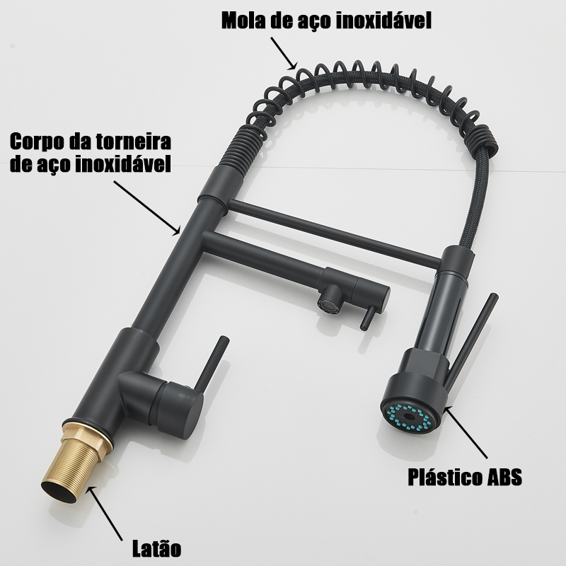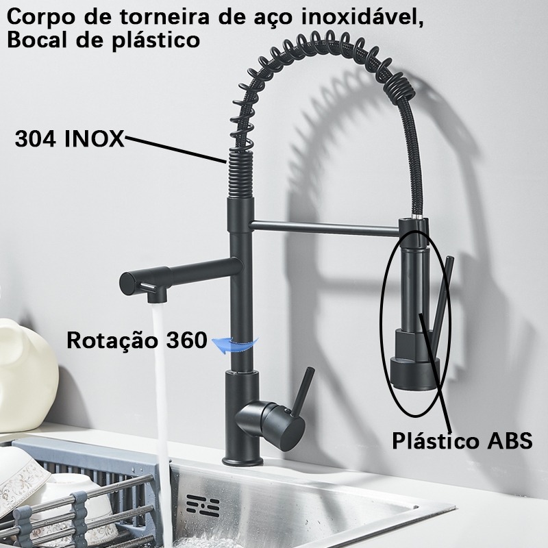 Torneira Cozinha Gourmet Monocomando Com Spray Extensor-Preto