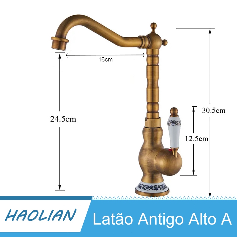 Torneira De Cozinha De Latão Antigo Torneira Misturadora Quente E Fria Único Furo Para Banheiro Alça De Porcelana
