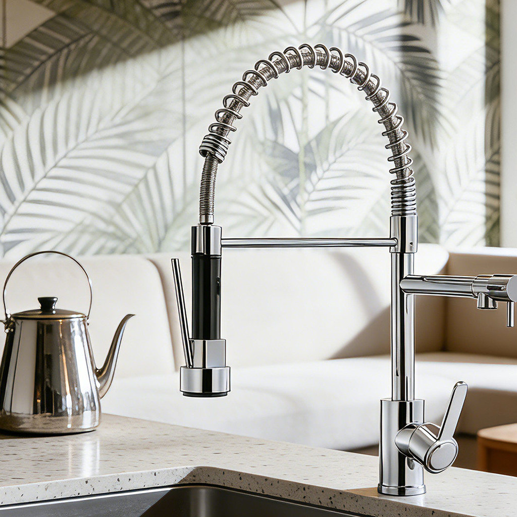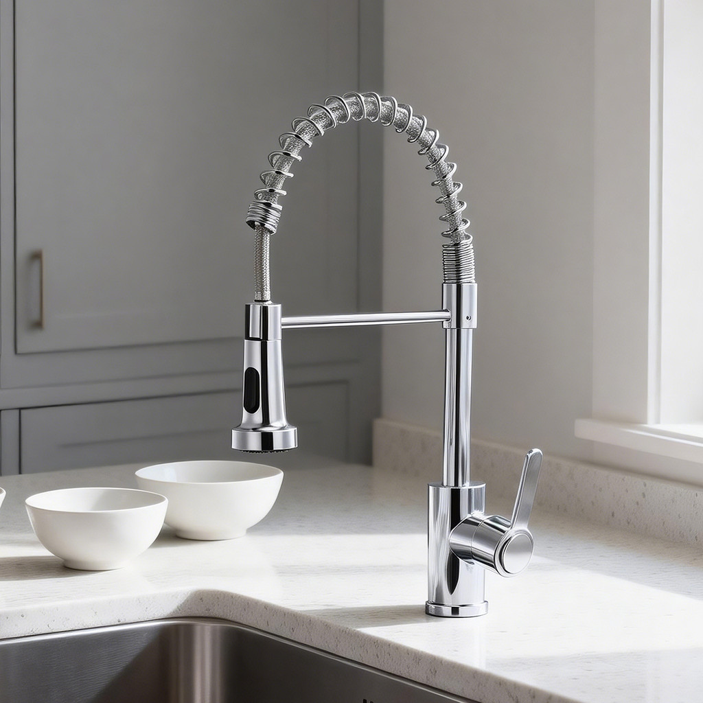 Torneira De Cozinha Gourmet Alça Única Com Extensor De Spray Tubo De Água Flexível Superior Prateado Para Ajuste