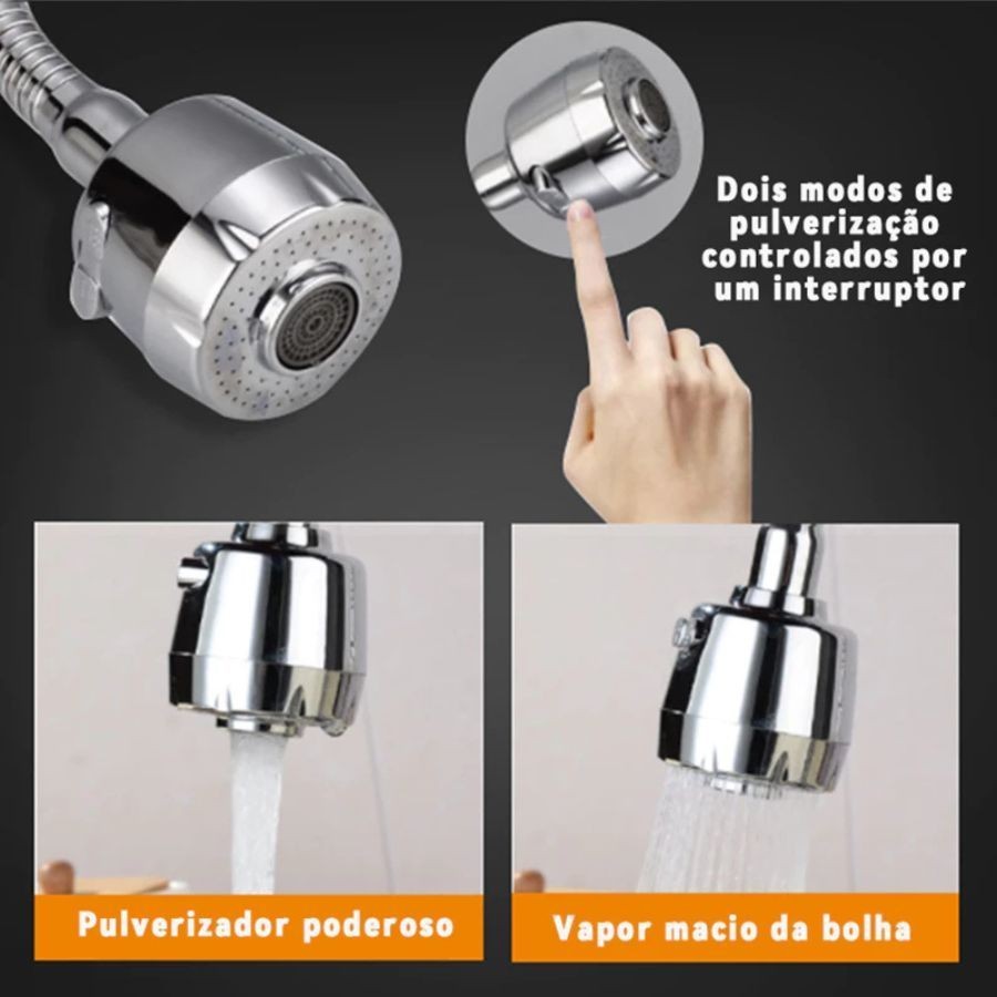 Torneira De Mesa Jato Duplo Com Rotação De 360 Graus Para Mesa De Metal Inox E ABS 37.5x11.5x5Cm