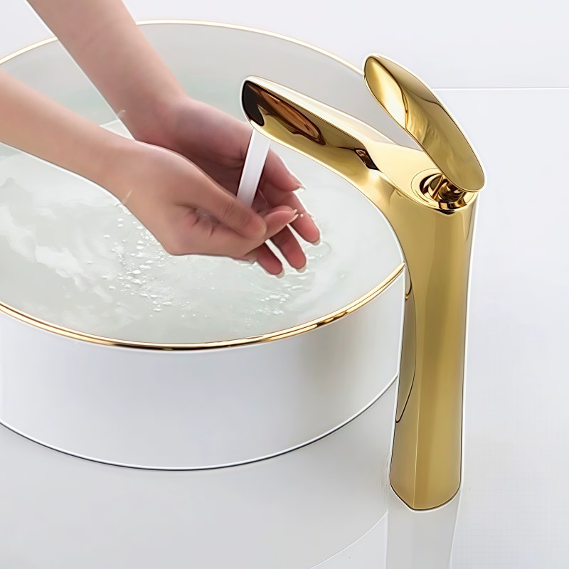 Torneira Dourada Banheiro Bica Alta Monocomando Misturador Inox Luxo 30cm/18cm Cromada/Preto Yesop