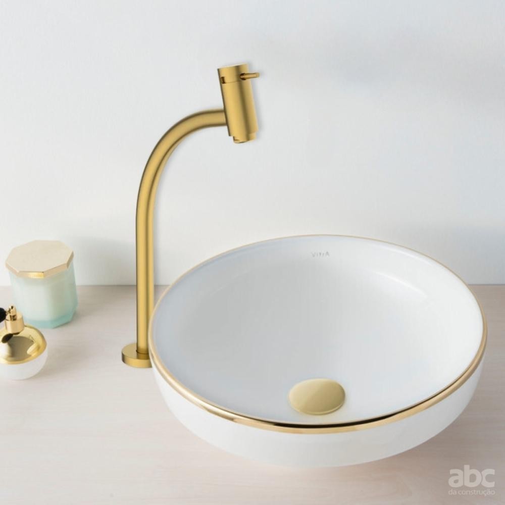 Torneira Lavatório Basic Mesa Bica Alta Matte Gold Celite