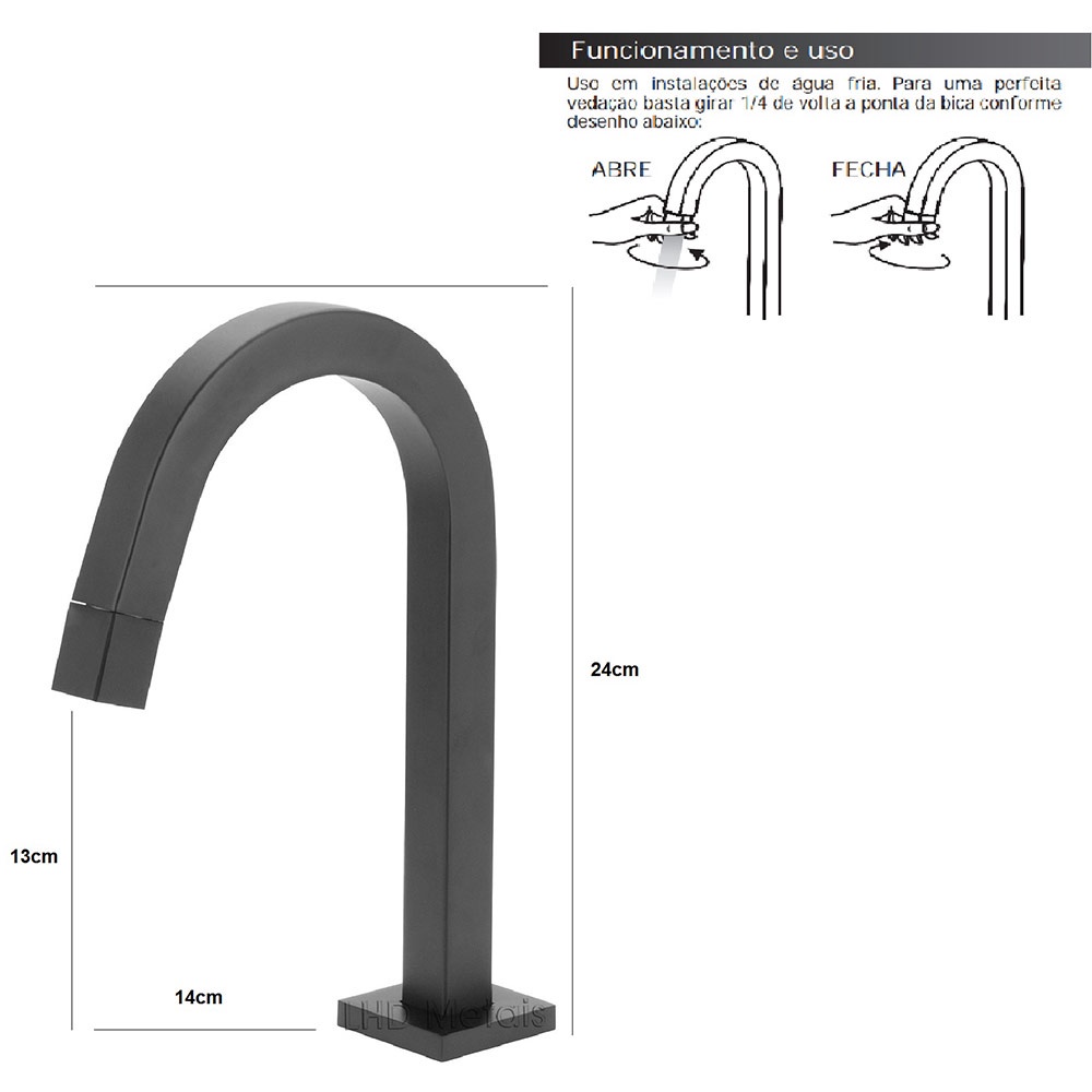 Torneira Lavatório Pia Banheiro Curva Bica Alta Quadrado Preto Cromado Bacia Metal