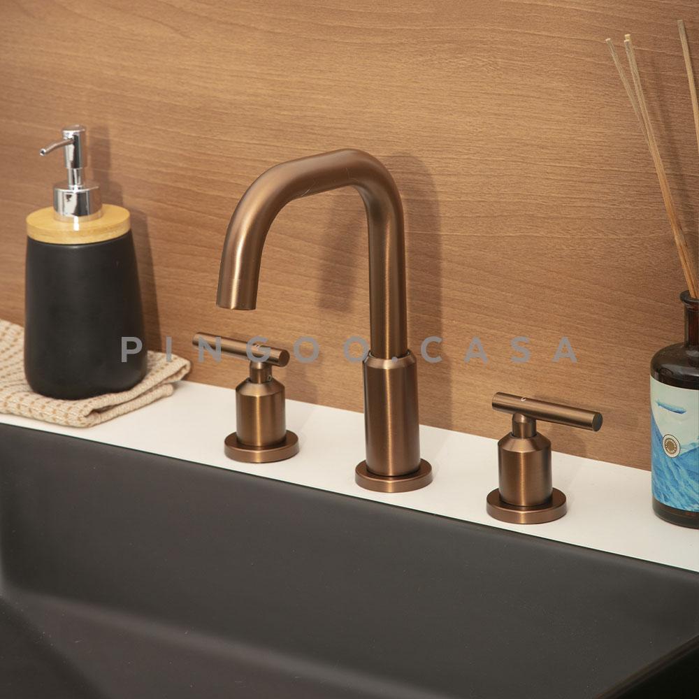 Torneira Para Banheiro Inox Misturador Duplo Comando Tefé Pingoo - Dourado Rose