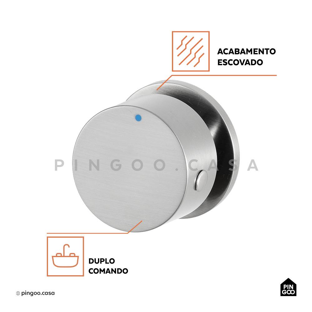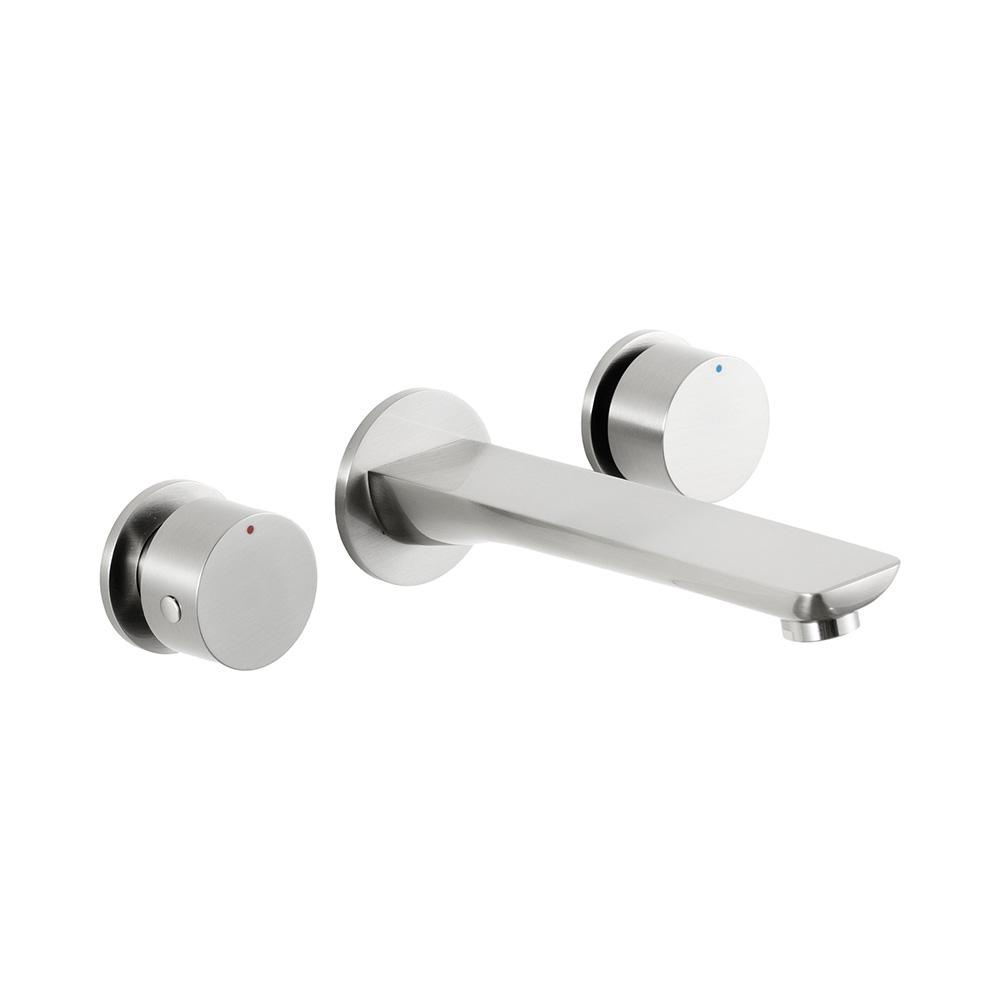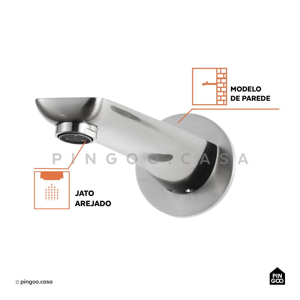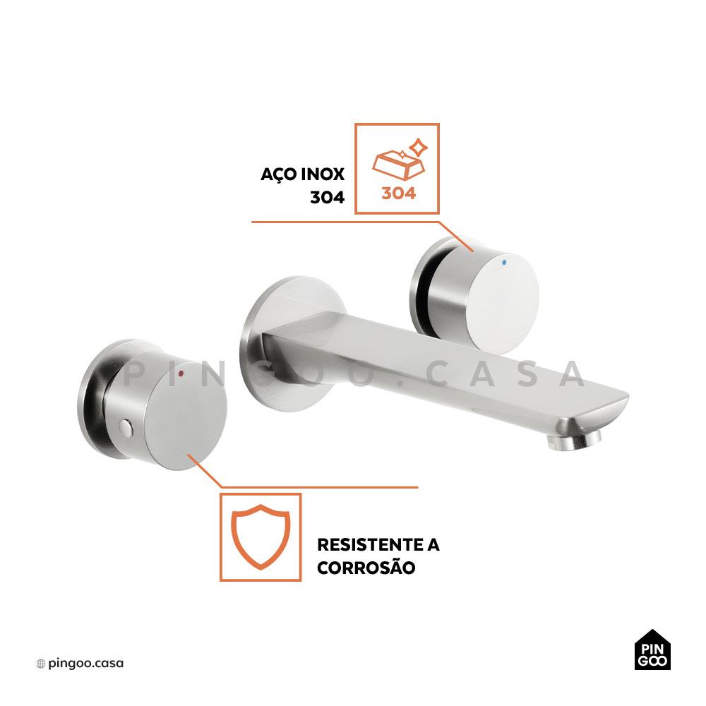 Torneira Para Banheiro Misturador Duplo Comando de Parede Piau Pingoo - Prata Escovado