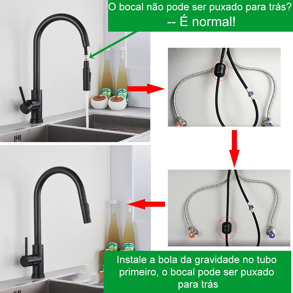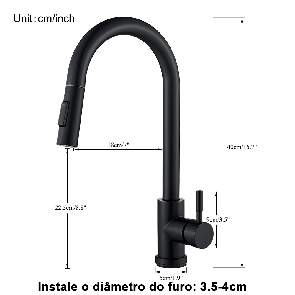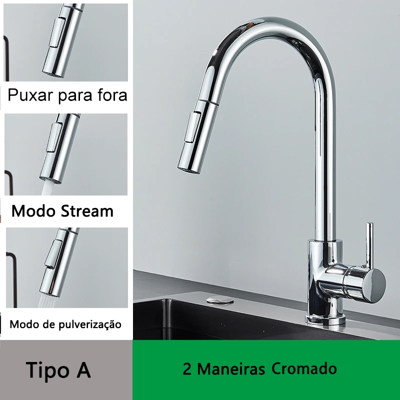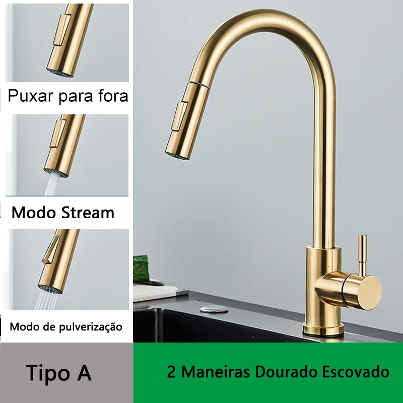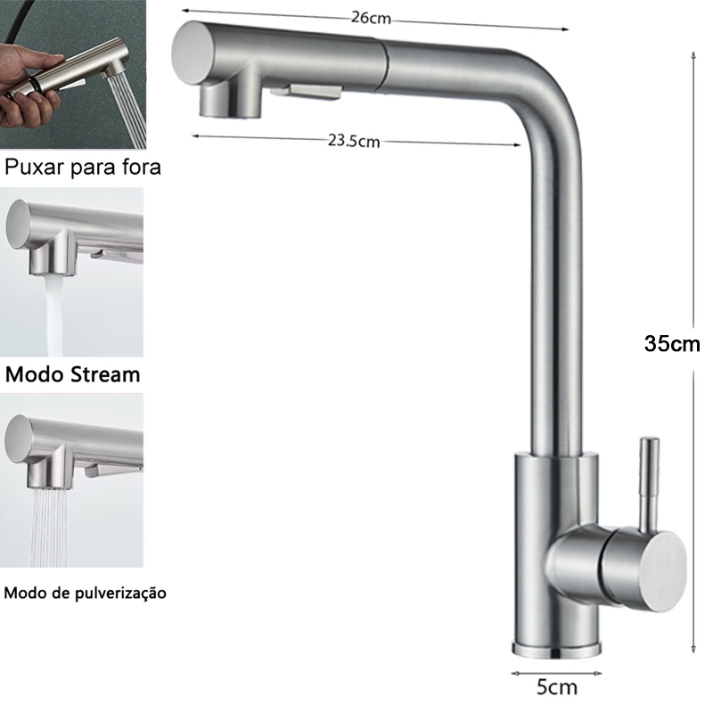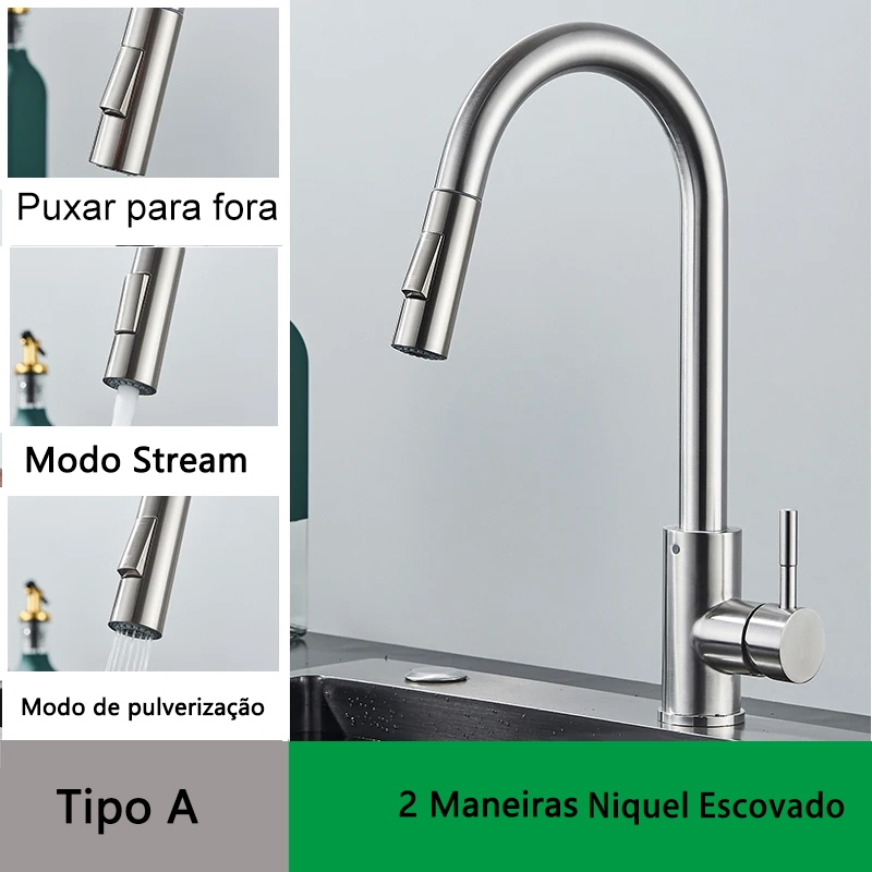 Torneira Para Cozinha Gourmet Misturador Monocomando Em Aço Inox Escovado