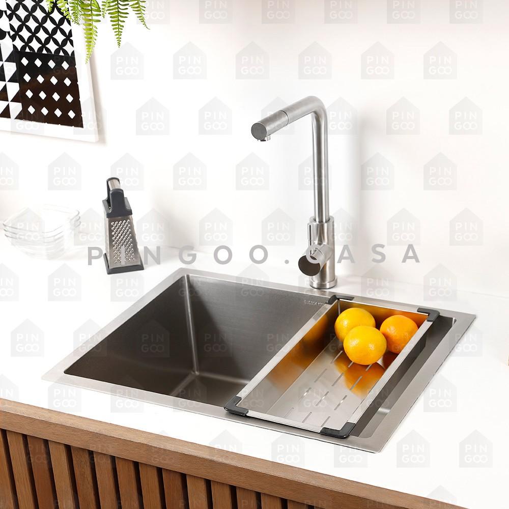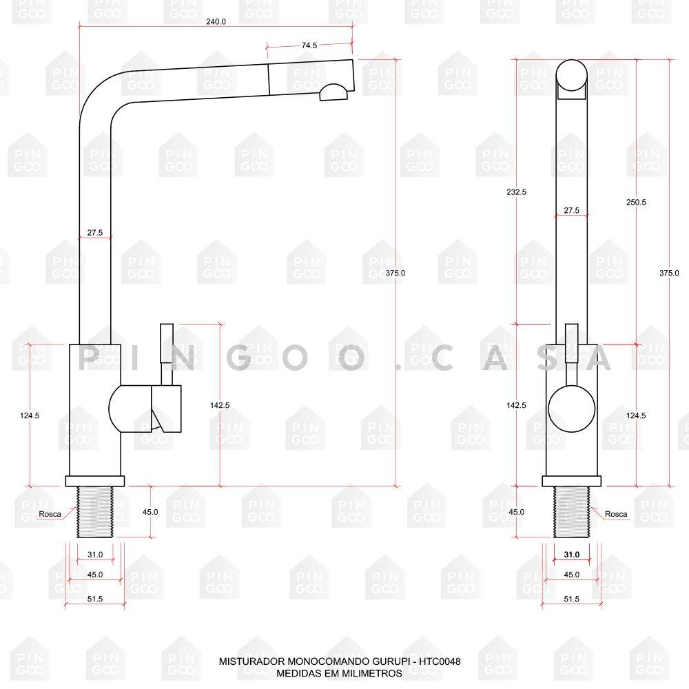 Torneira Para Cozinha Gourmet Misturador Monocomando Extensível Aço Inox 304 Gurupi Pingoo - Prata Escovado