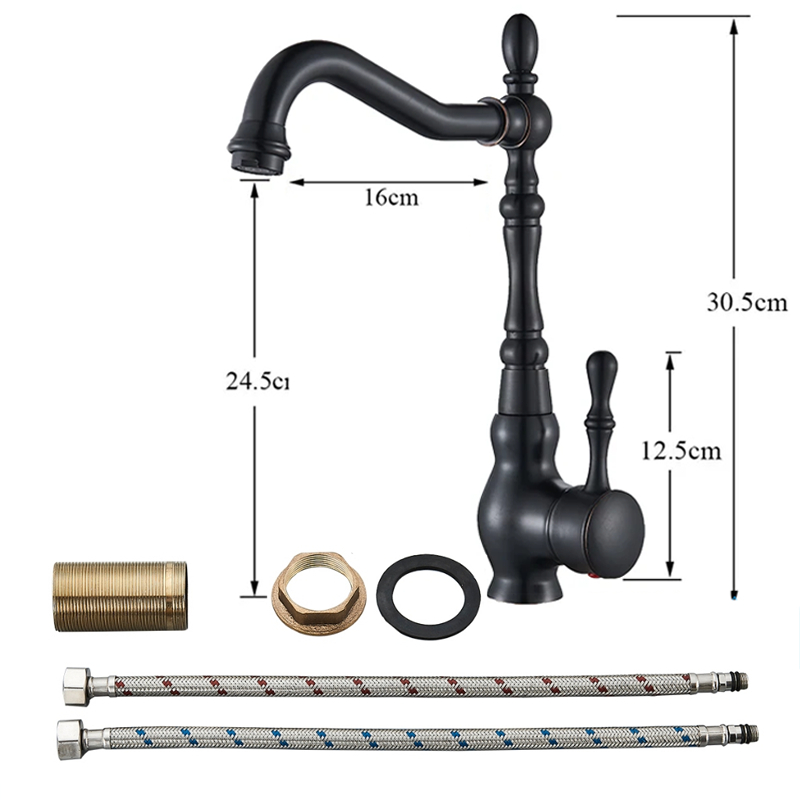 Torneira de água quente e fria de pia alta para banheiro com manípulo único em latão antigo