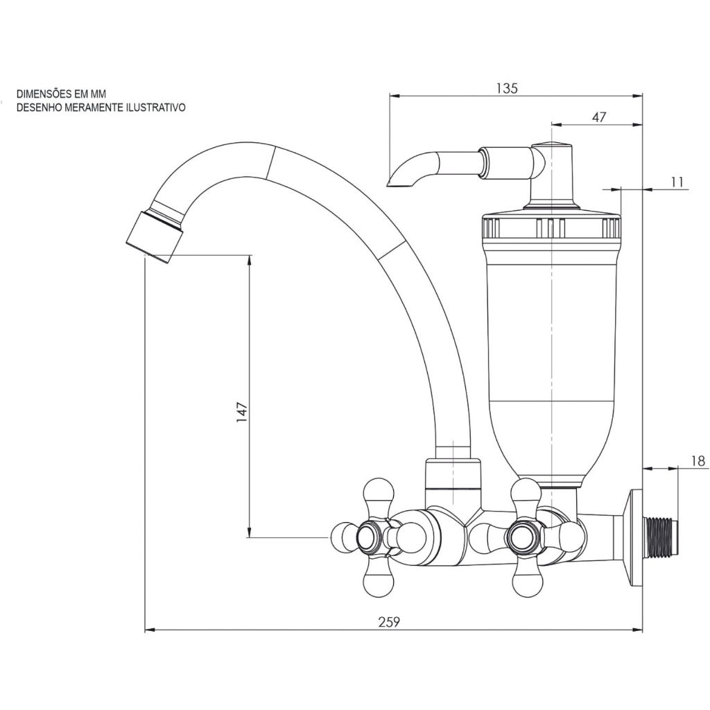 Torneira de Cozinha Com Filtro de Parede C70 Rosa