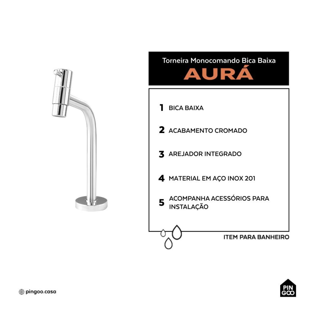 Torneira de banheiro monocomando baixa Aurá Pingoo - Prata