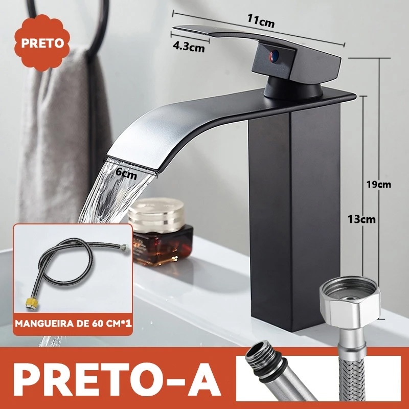 Torneira De Luxo Quente e frio Banheiro Lavabo cuba Cascata Monocomando Preta Fosca Com mangueira