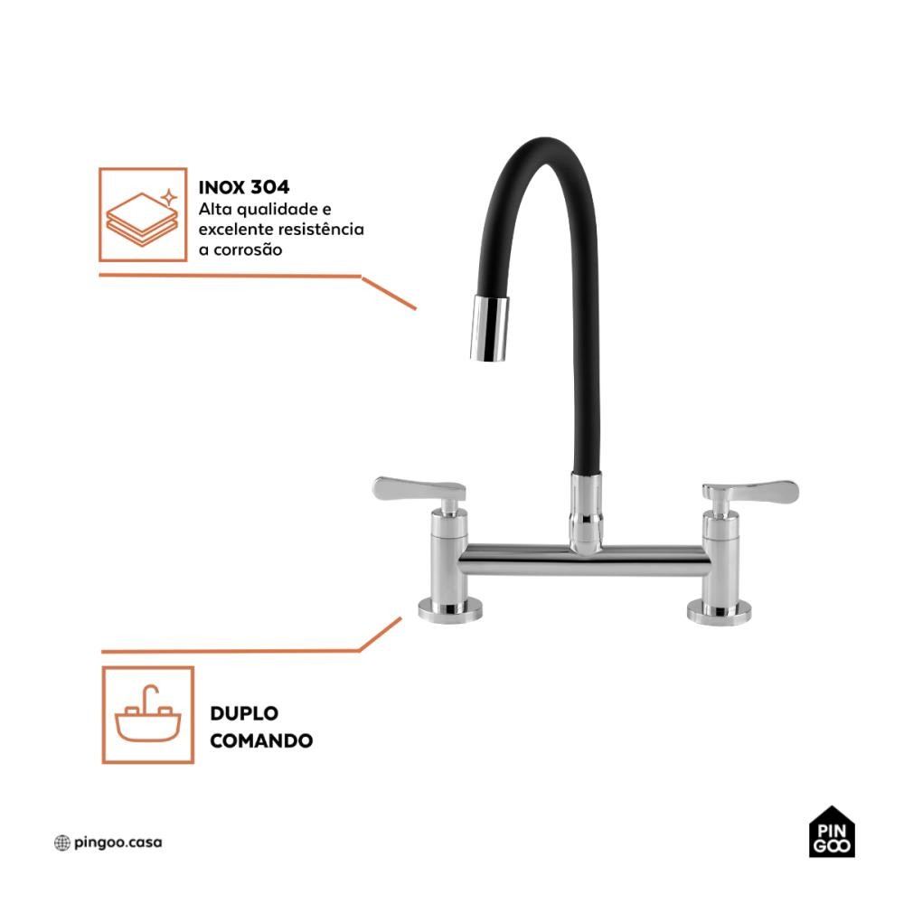 Torneira de cozinha flexivel misturador duplo comando Itaguari Pingoo - Prata