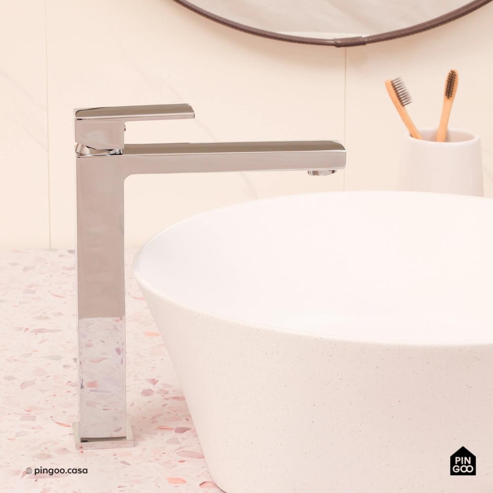 Torneira para Banheiro Misturador Monocomando Purangi Alta Pingoo - Prata