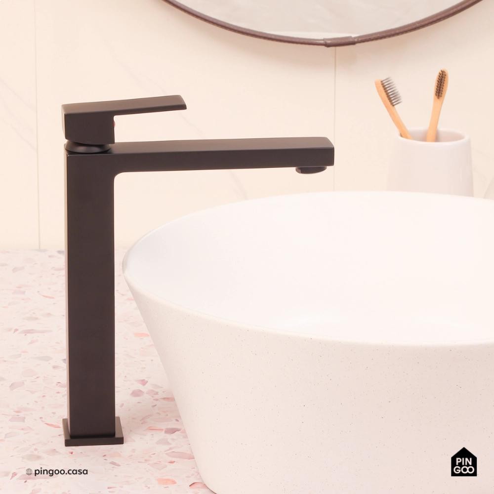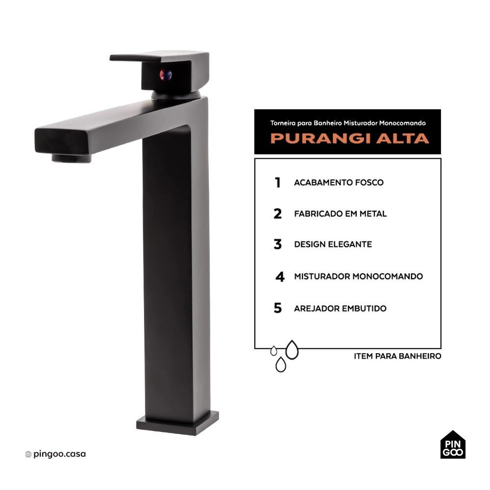 Torneira para Banheiro Misturador Monocomando Purangi Alta Pingoo - Preto