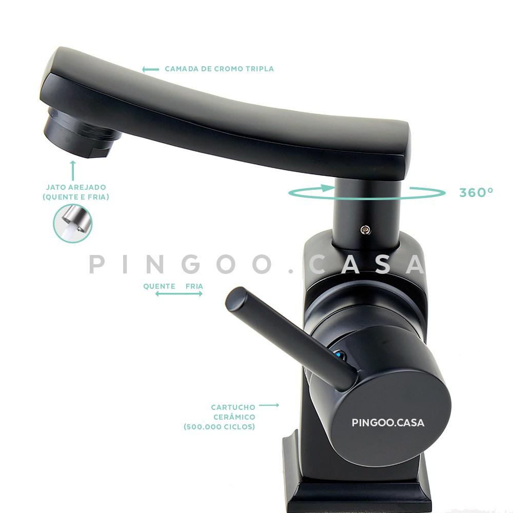 Torneira para banheiro Misturador Monocomando baixa Moju Pingoo - Preto