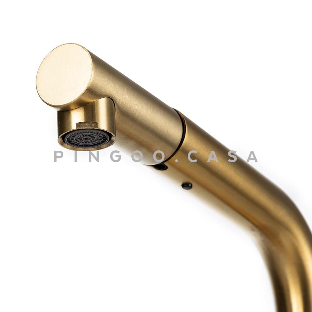 Torneira para cozinha Gourmet Misturador Monocomando Extensível em Aço inox Escovado Gurupi Pingoo - Dourado