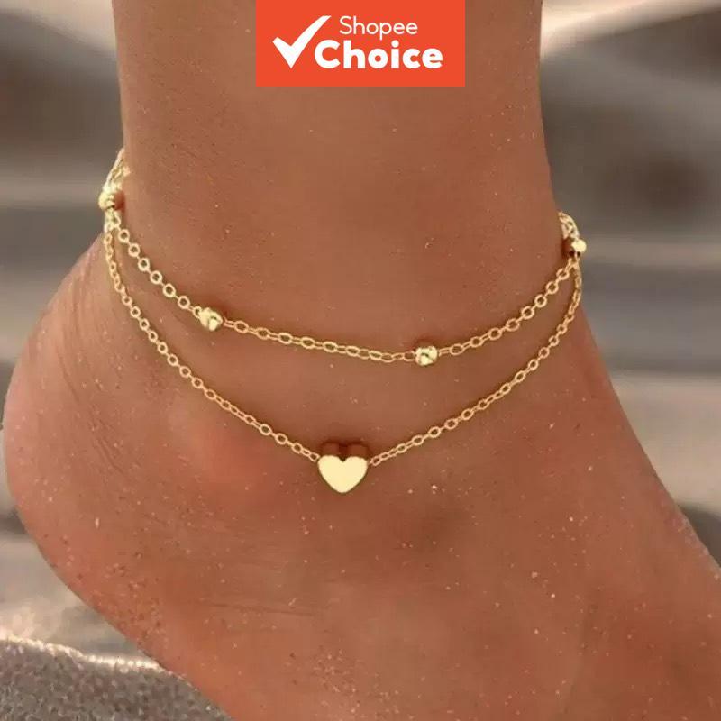 Tornozeleira De Coração Para Mulheres , Camada Dupla , Simples , Praia , Corrente Pés , Acessório De Joias