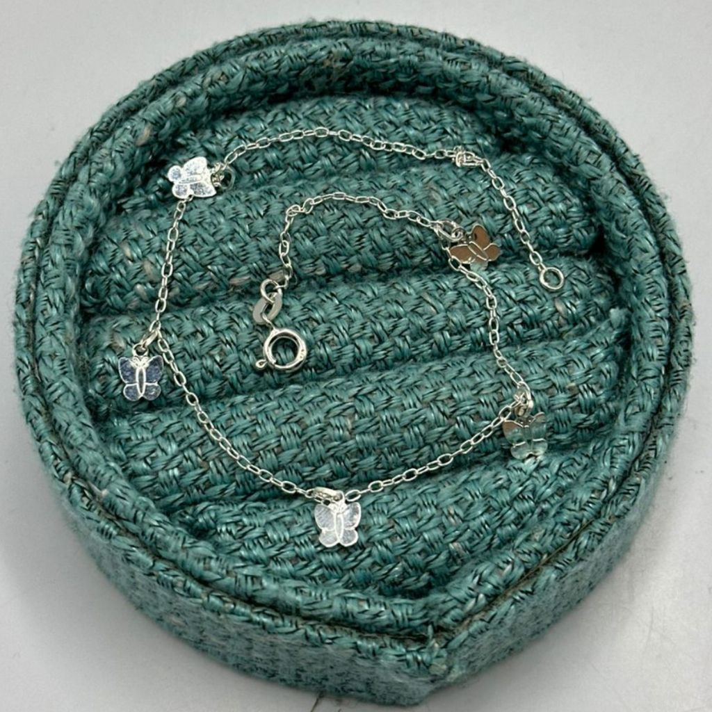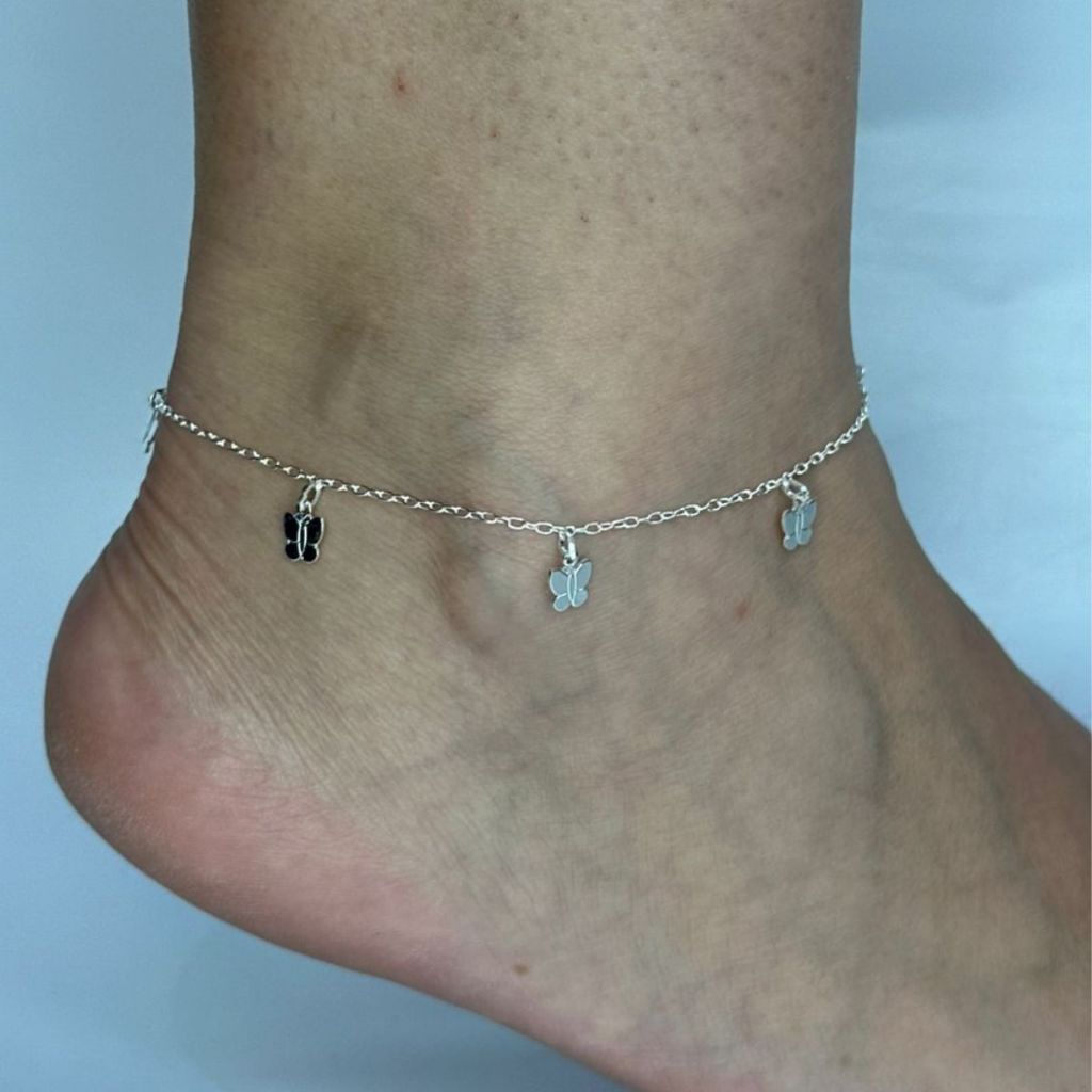 Tornozeleira Feminina de Prata 925 Borboletas pendente