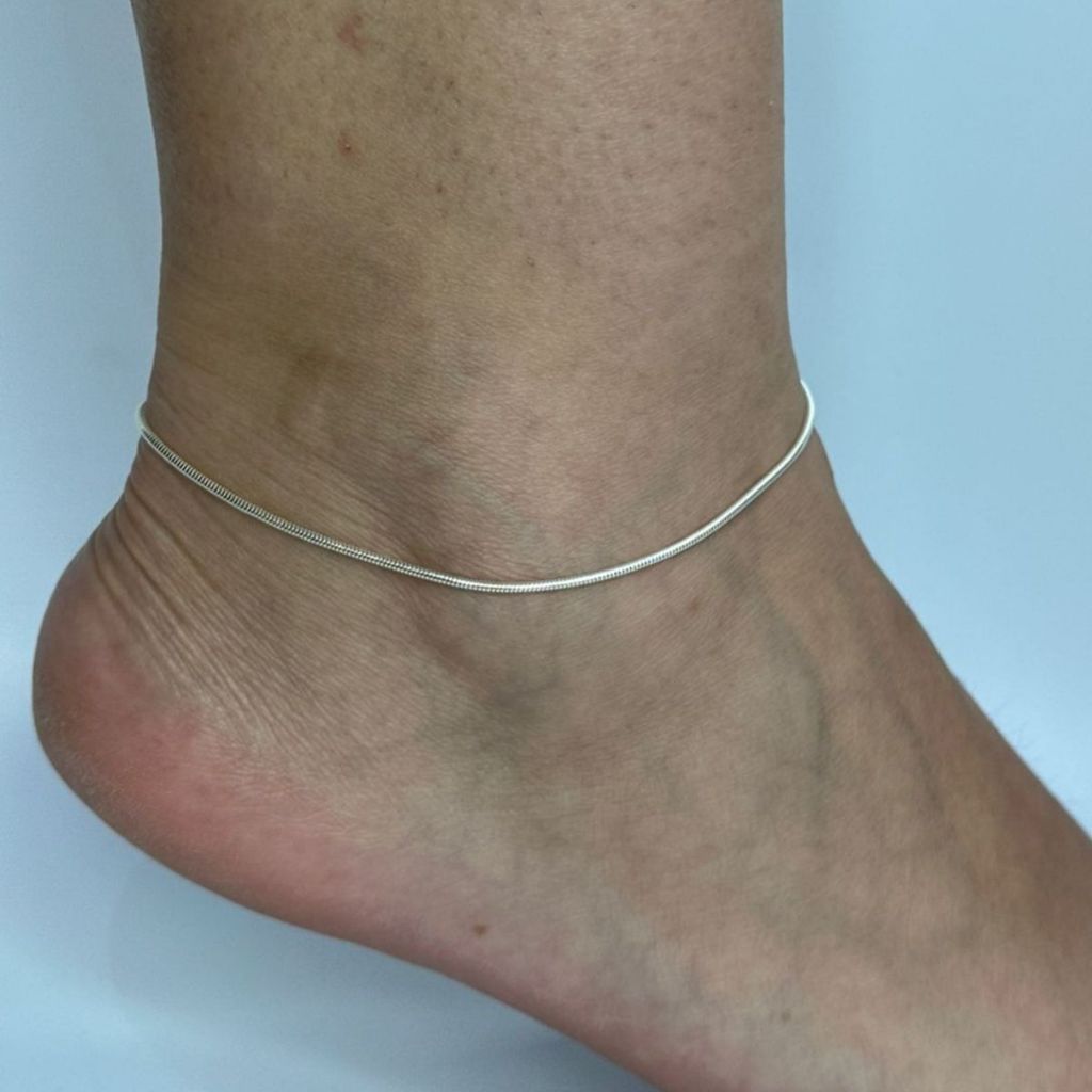 Tornozeleira Feminina de Prata 925 Rabo de Rato Redonda com 1mm