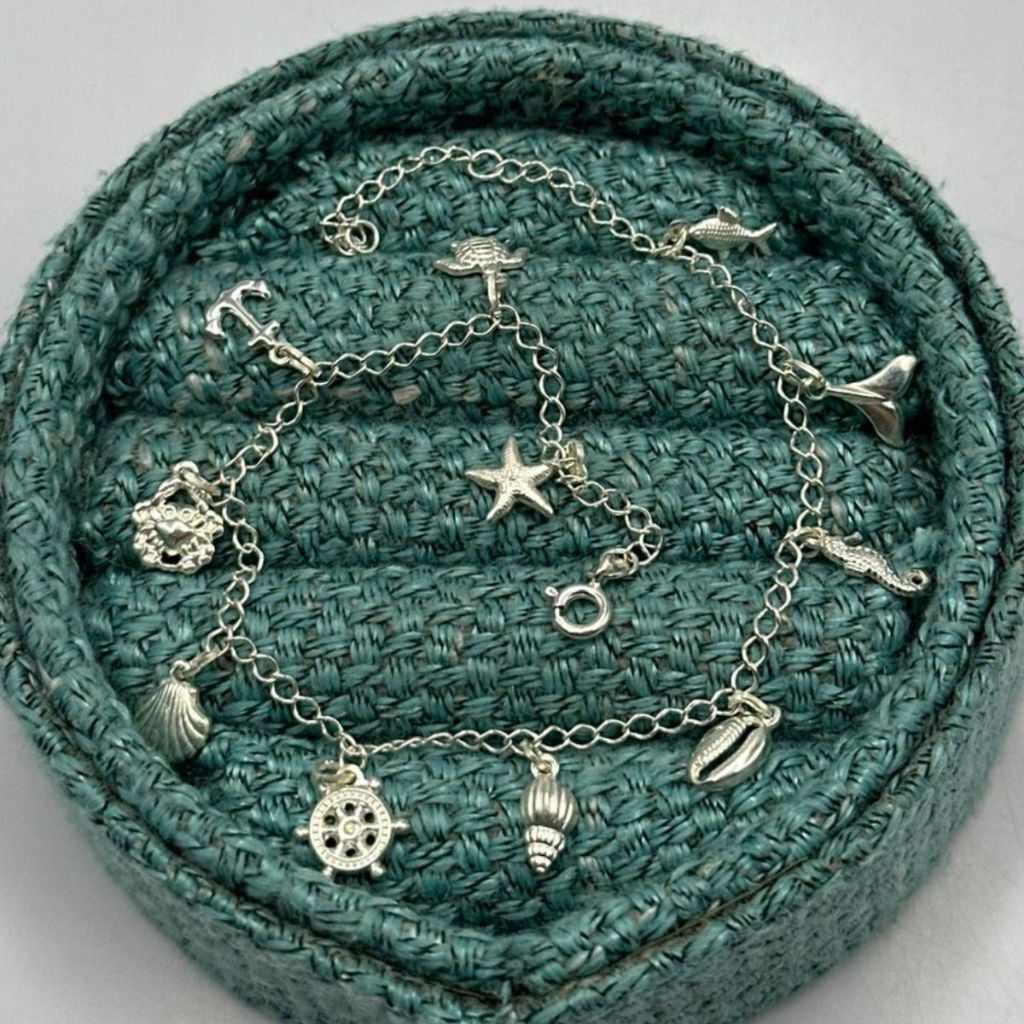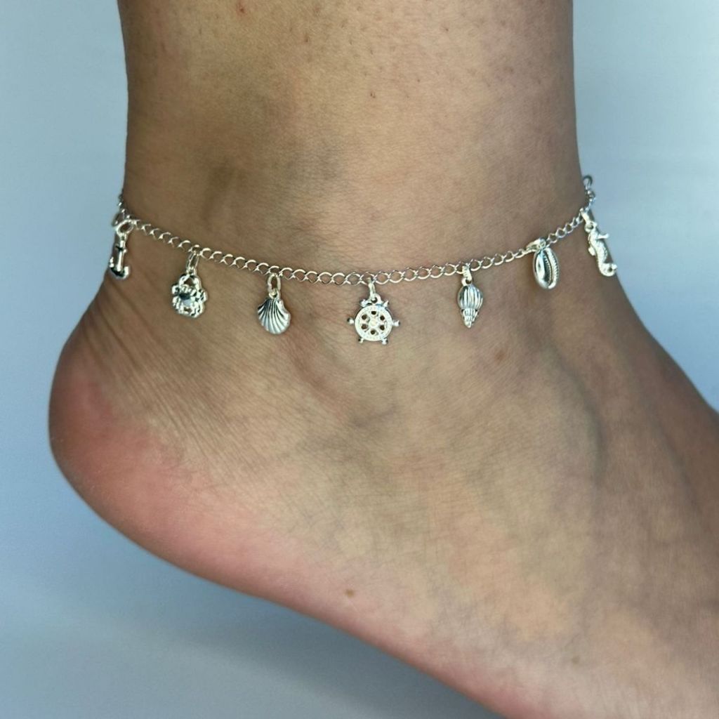 Tornozeleira Prata 925 buzios concha cavalo-marinho tartaruga peixe