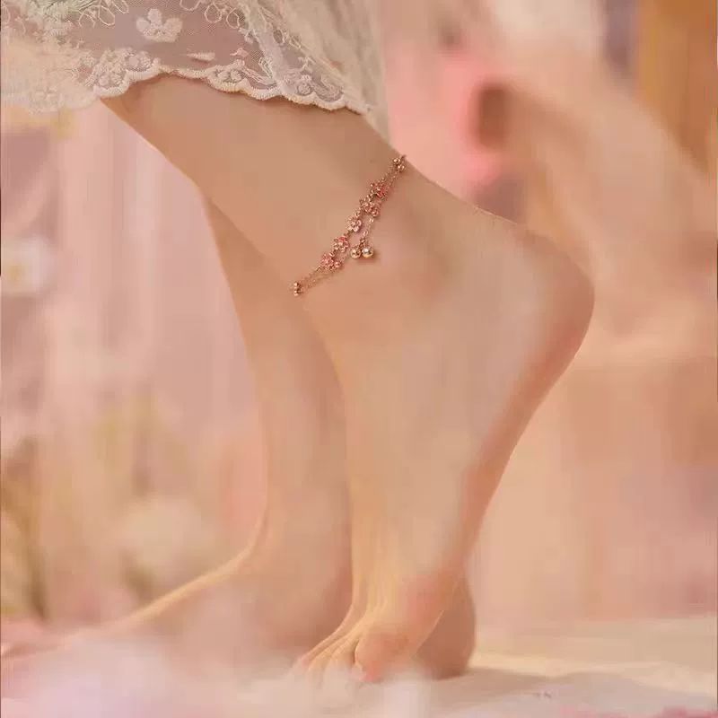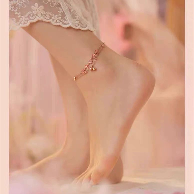 Tornozeleira de flor de pêssego para mulheres; corrente de perna; anel de pé; presente de aniversário para namorada no