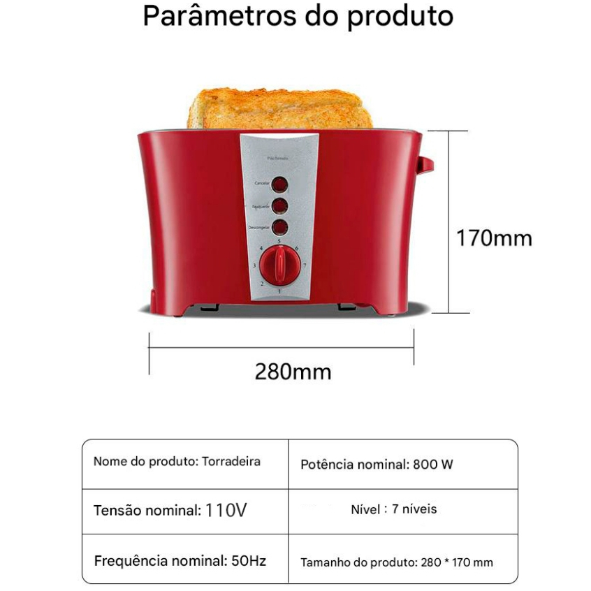 Torradeira Tostador Premium 110V Com Bandeja de Migalhas Inox 7 Níveis de Tostagem