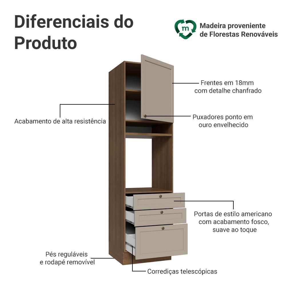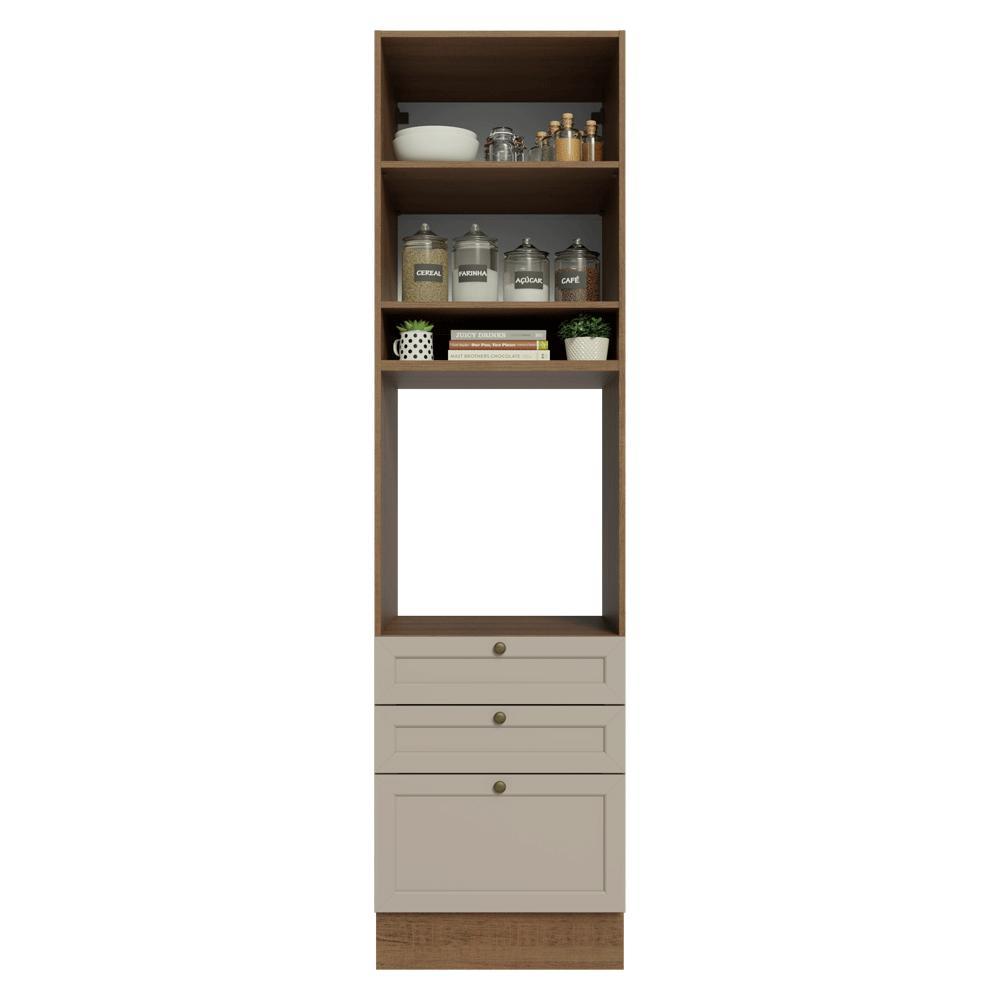 Torre Quente 60 cm 1 Porta 3 Gavetas Rustic/Crema Vik Madesa