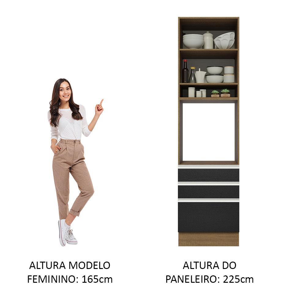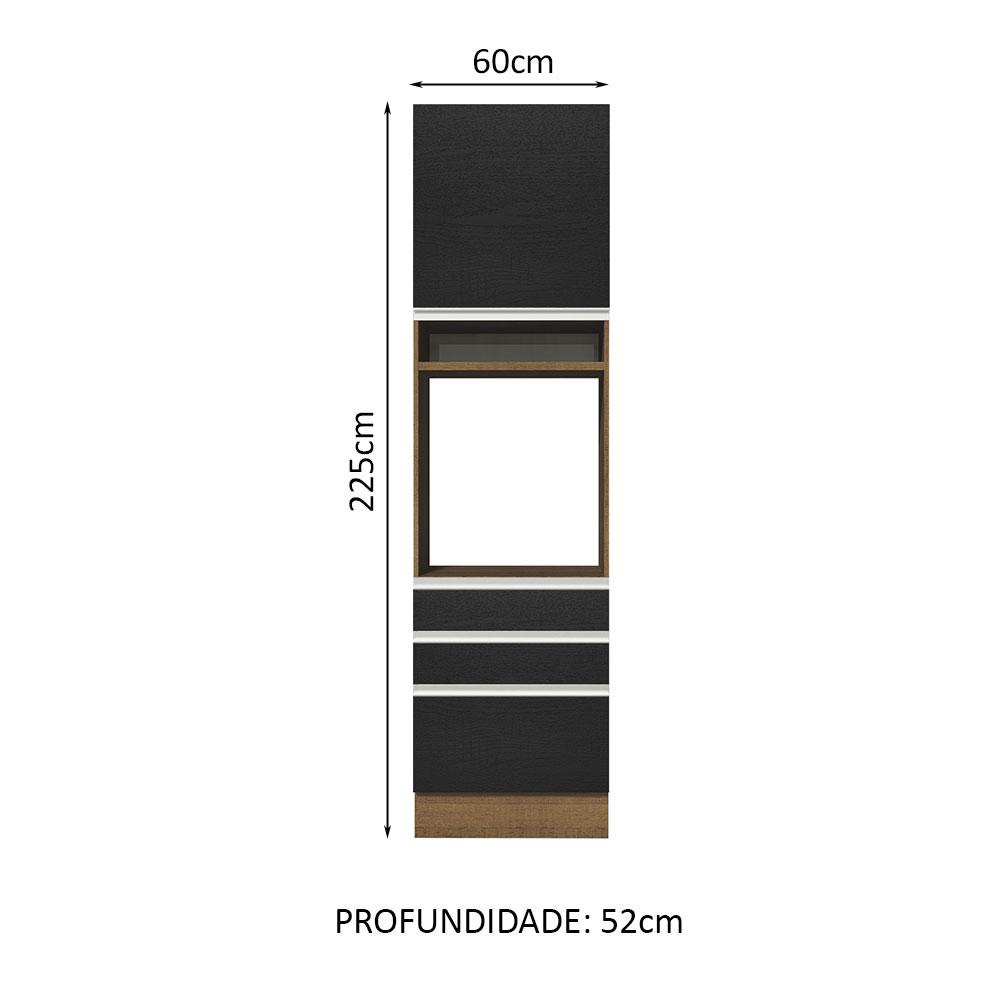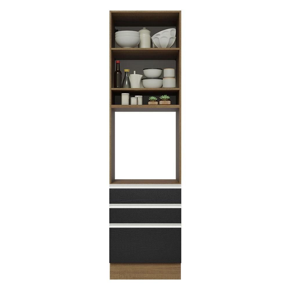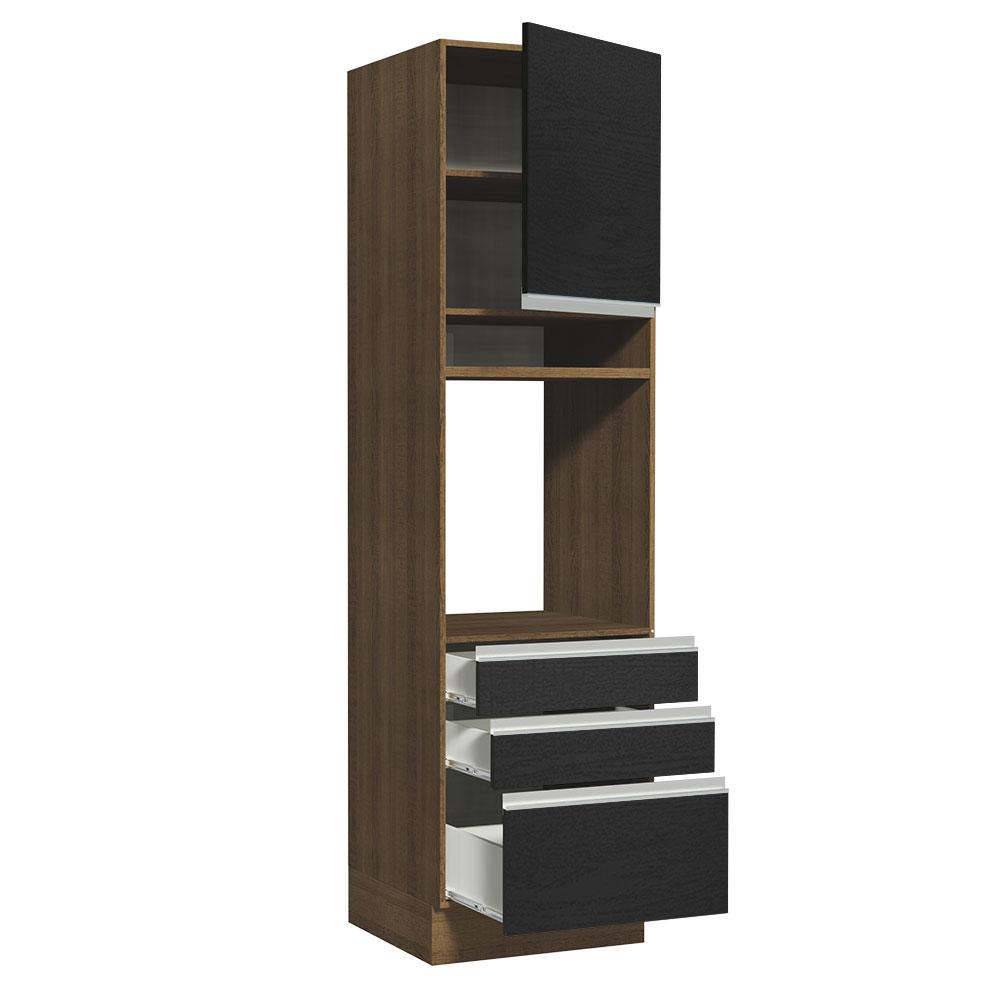 Torre Quente Armário de Cozinha 60 cm 1 Porta 3 Gavetas Rustic/Preto Glamy Madesa