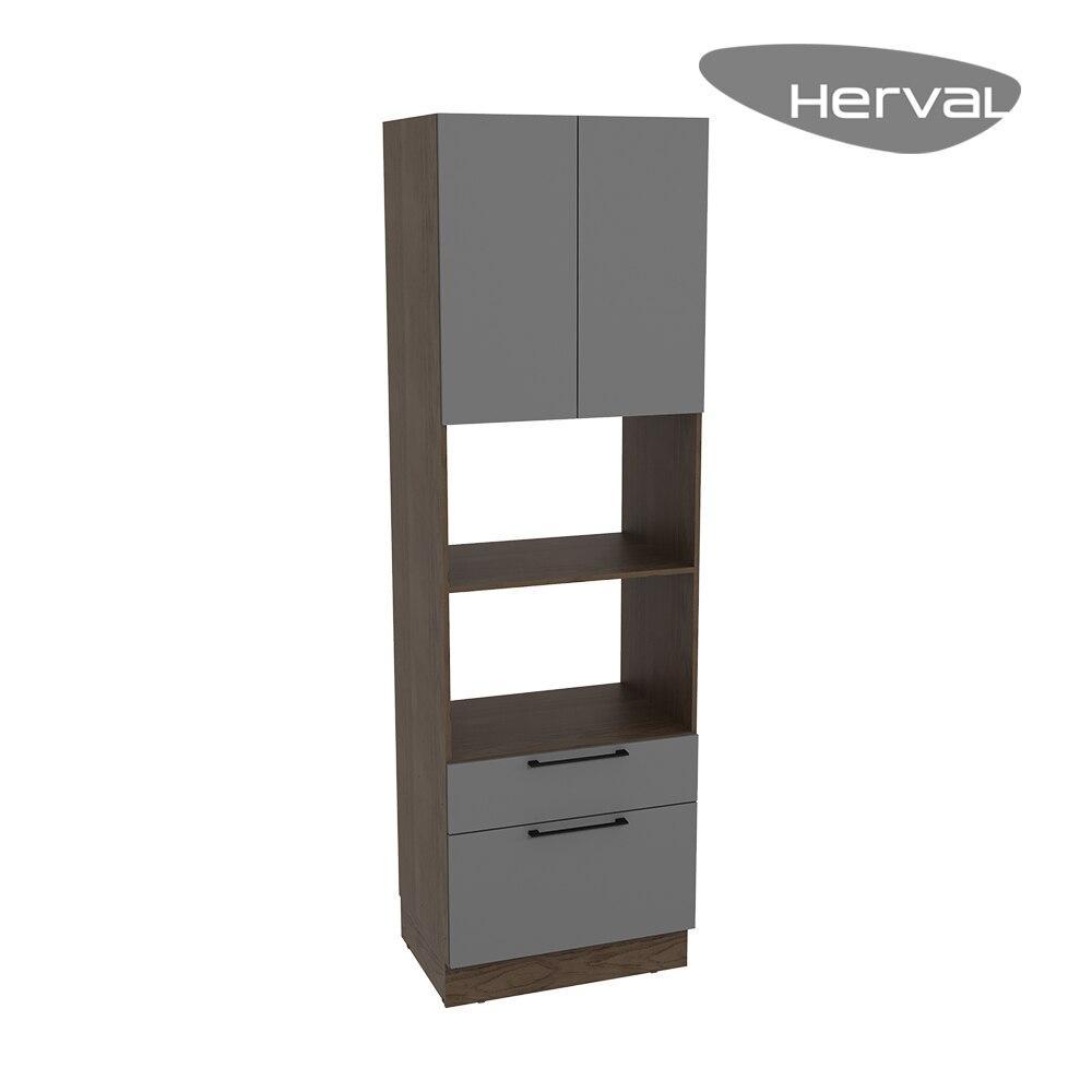 Torre Quente Herval Amsterdam, MDP, 2 Portas e 2 Gavetas, Avelã e Cinza Grafite, 70 cm