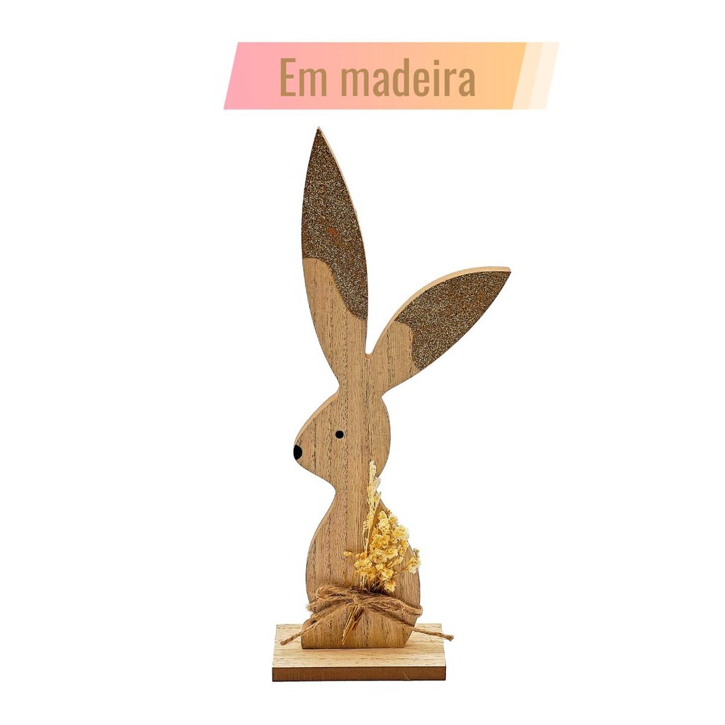 Totem Decor Coelho Lapin em Madeira - 31 x 10 x 5 cm