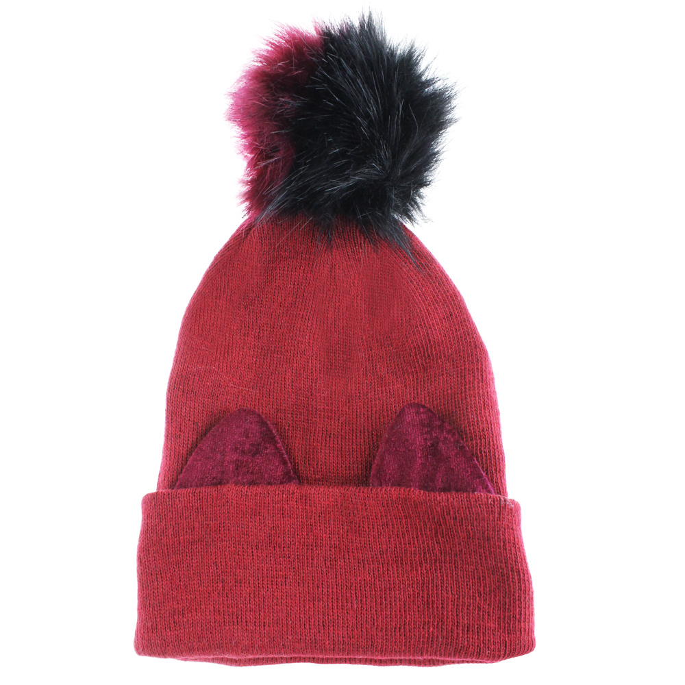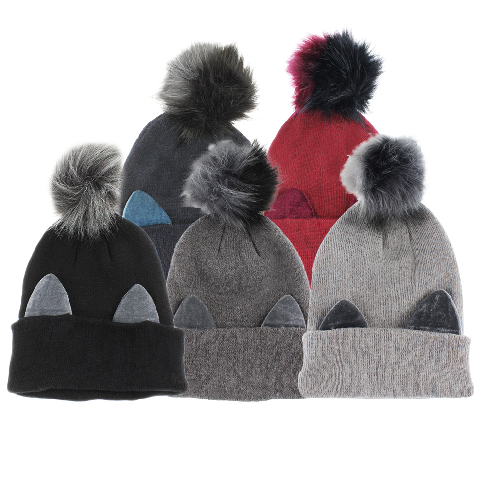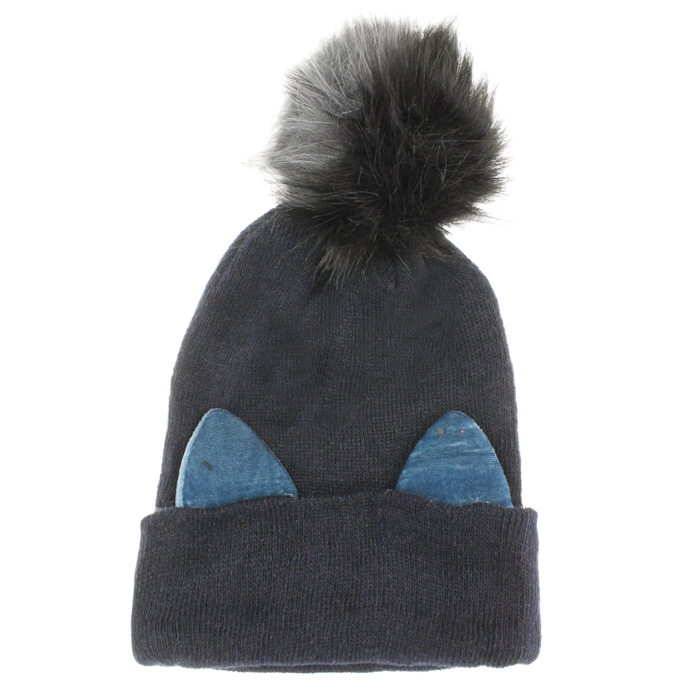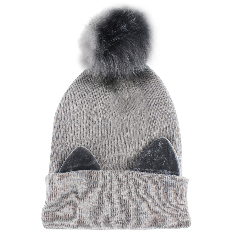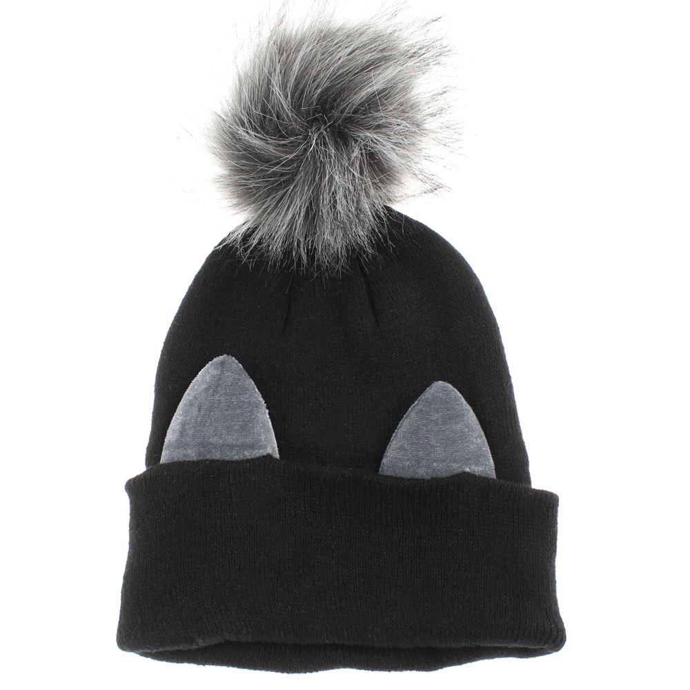 Touca Infantil Gorro Menino Menina Tricotado Quente Fashion Com Pompom e Orelha de Gato na Dobra