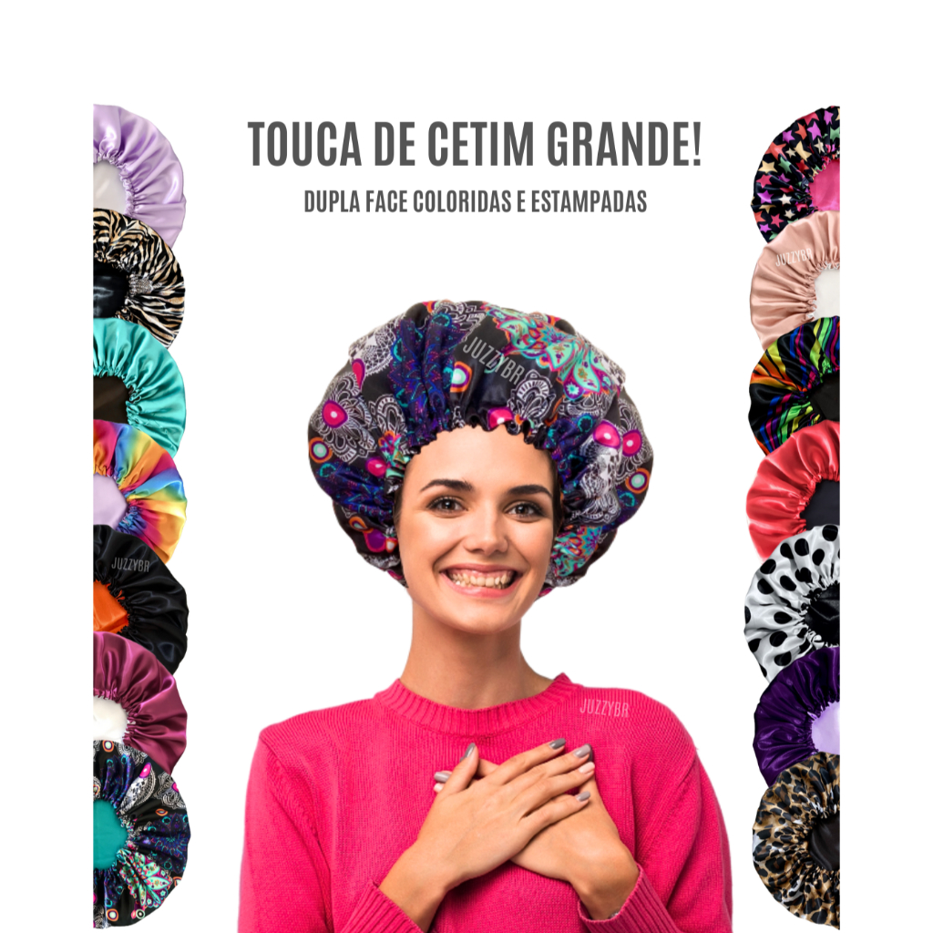 Touca de cetim dupla face grande G - touca de dormir coloridas e estampada qualidade premium - a melhor touca de cetim