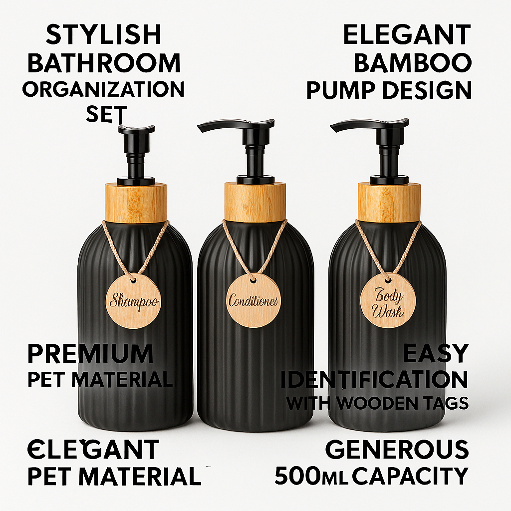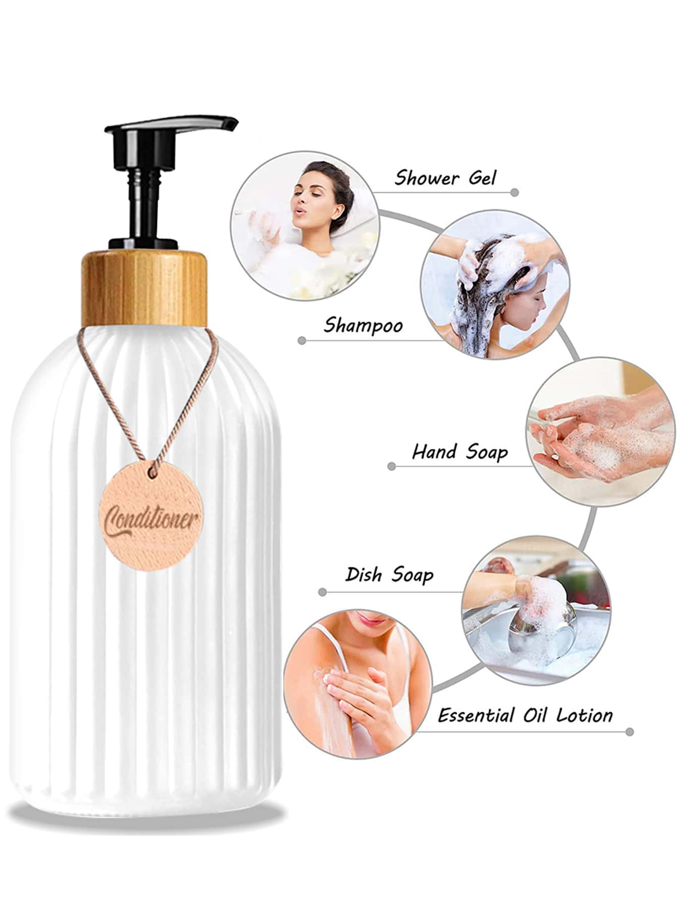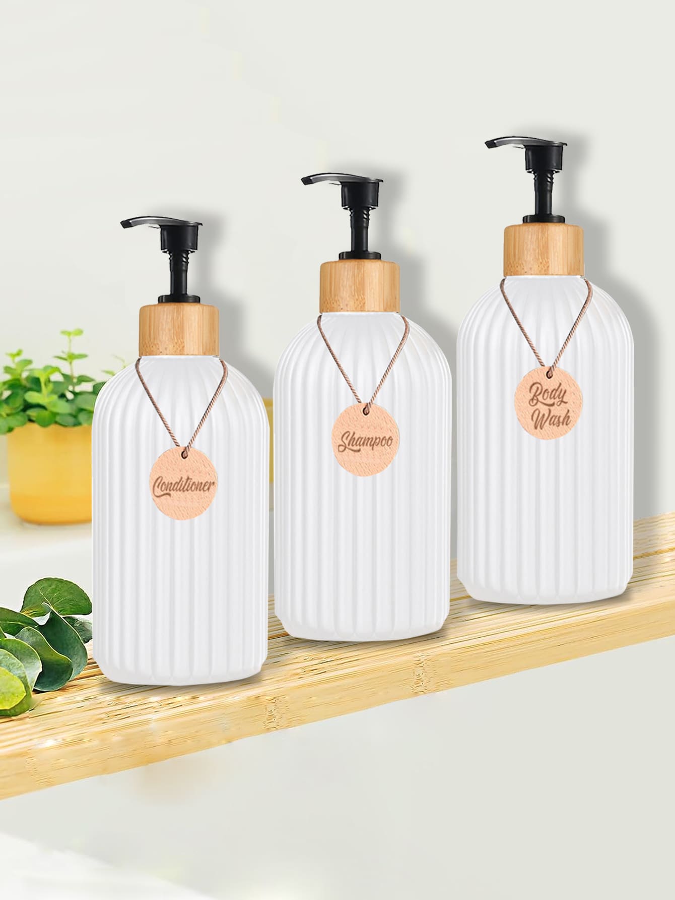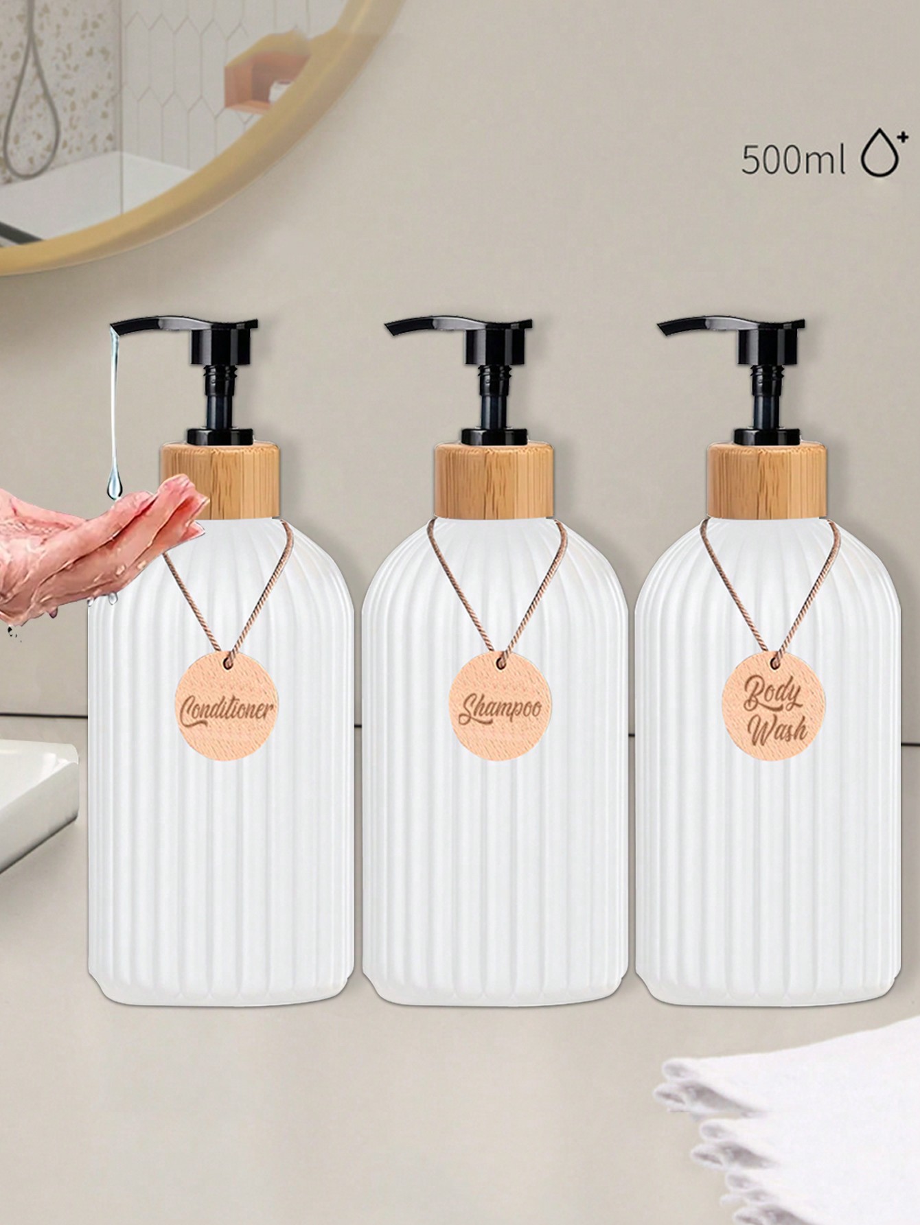 Três Frascos Listrados De 500ML Para Shampoo , Sabonete Líquido E Condicionador : Ideais Organização De Banheiro