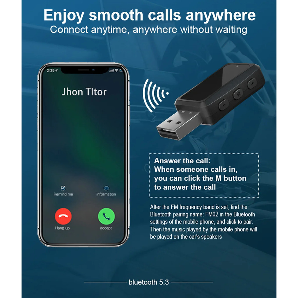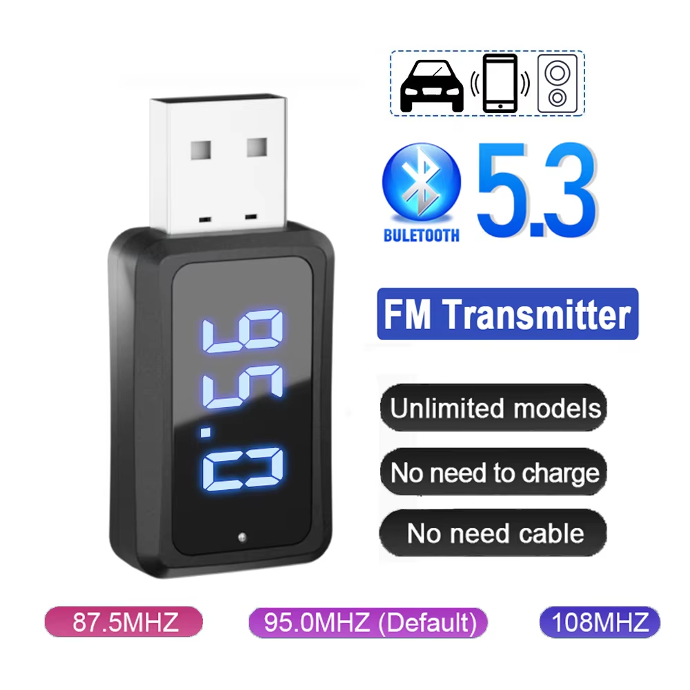 Transmissor Fm Carro Bluetooth 5.3 Receptor Chamada Handsfree Mini USB Power Car Kit Para Rádio De