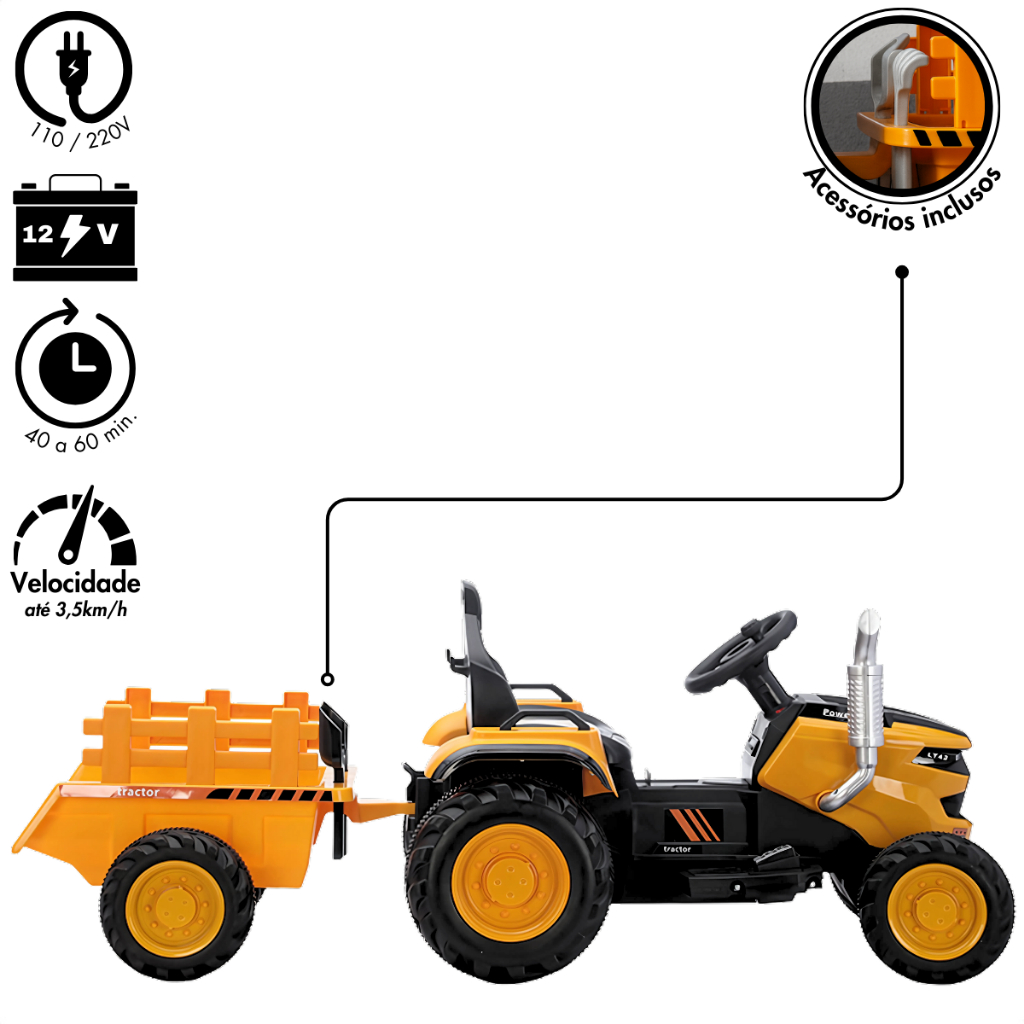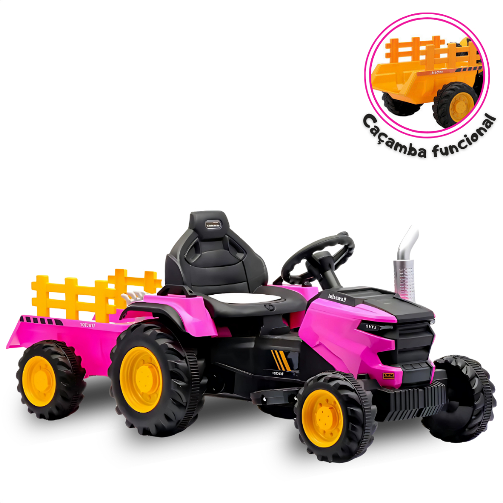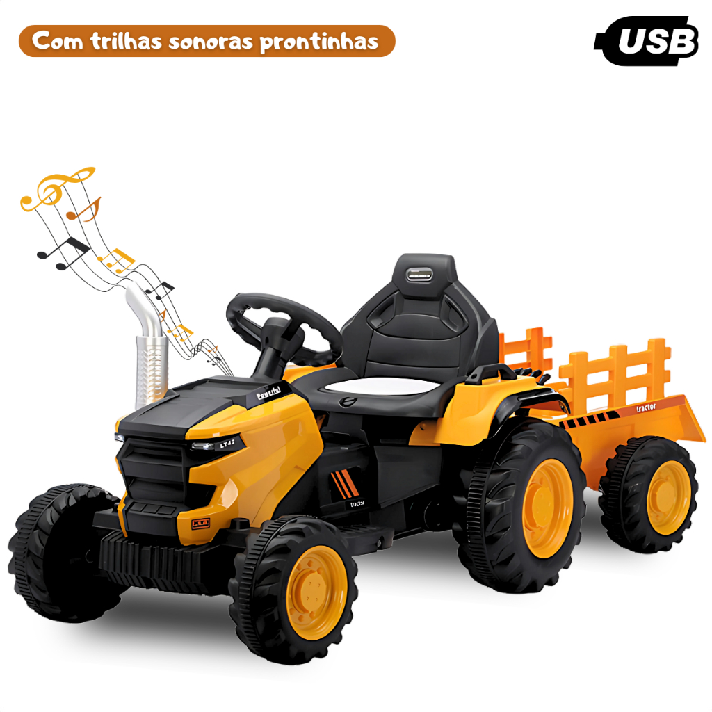 Trator Elétrico Infantil 12V com Caçamba Controle Remoto e Música