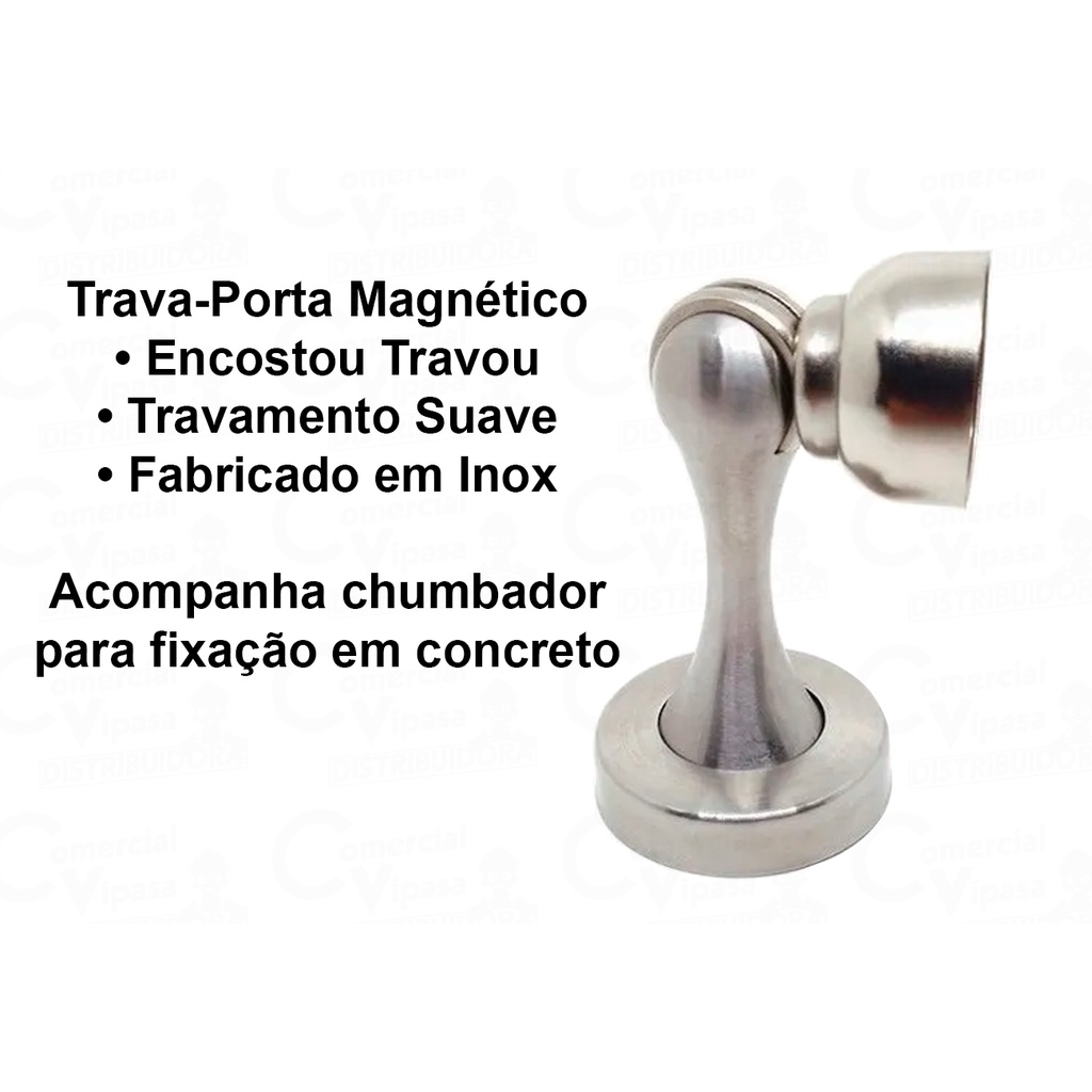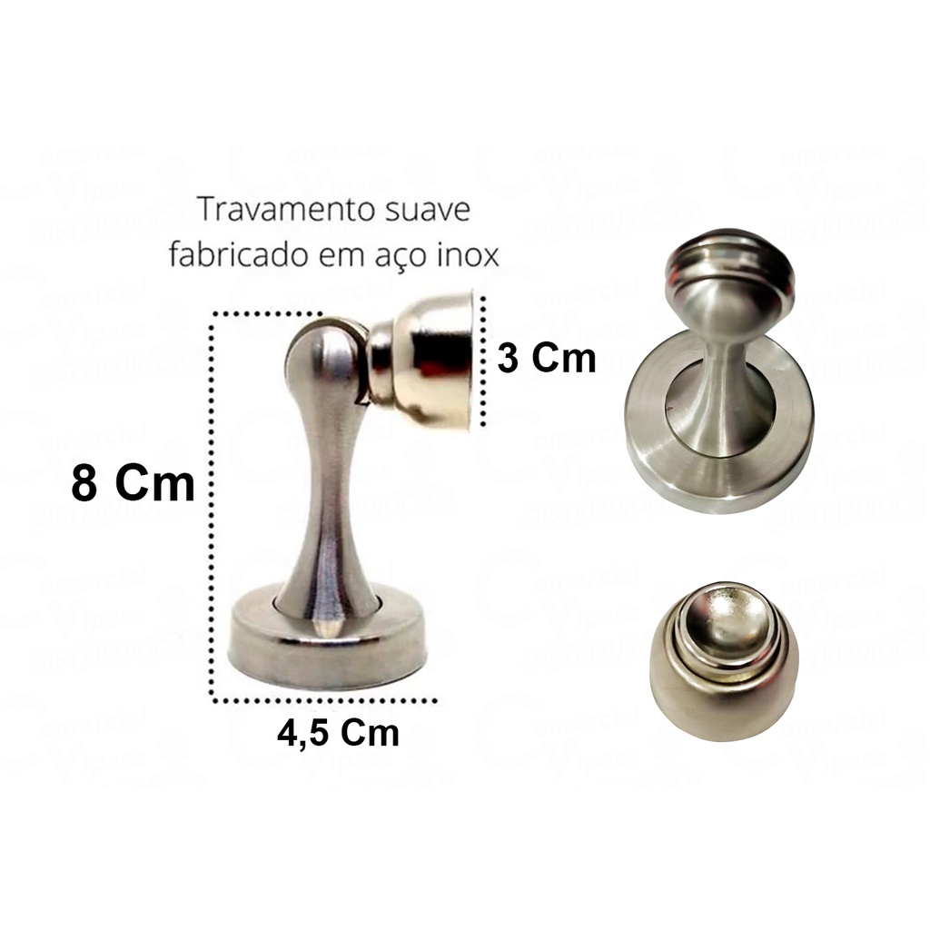 Trava Fixador De Porta Segura Magnética Imã Inox Batedor Amortecedor Soprano
