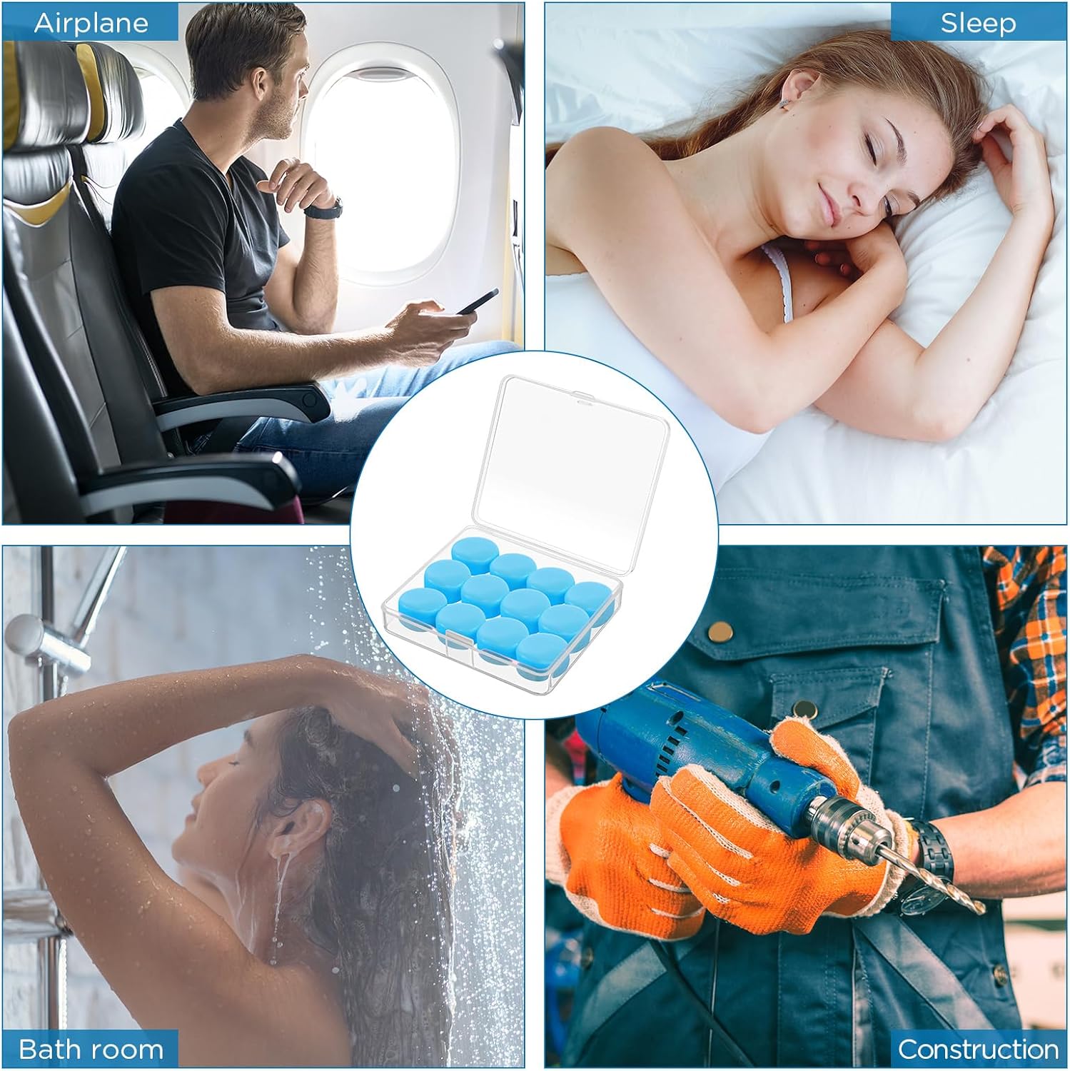 TrelaCo 12 Unidades de Protetores Auriculares Macios para Dormir, Reutilizáveis Moldáveis de Silicone para Redução de