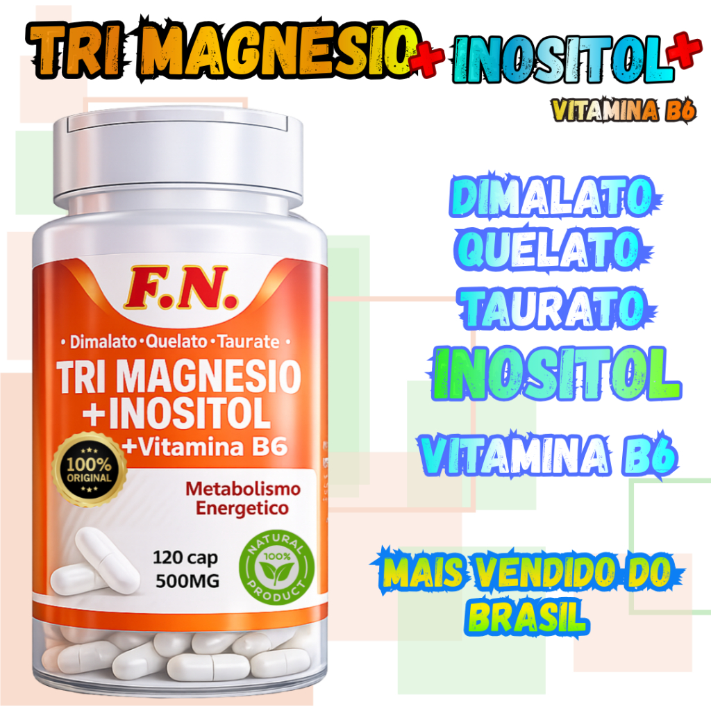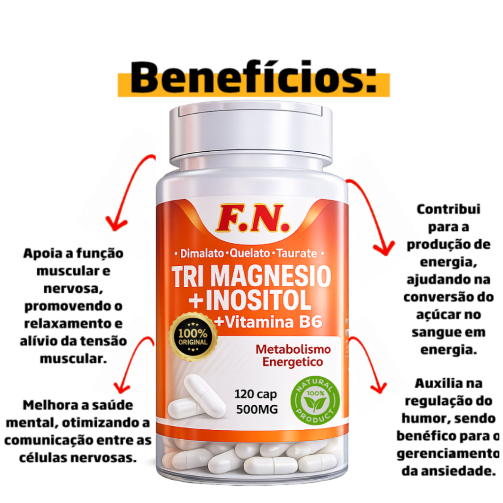 Tri Magnésio + Inositol Cápsulas Suporte para Mente, Sono Tranquilo e coração anti stress