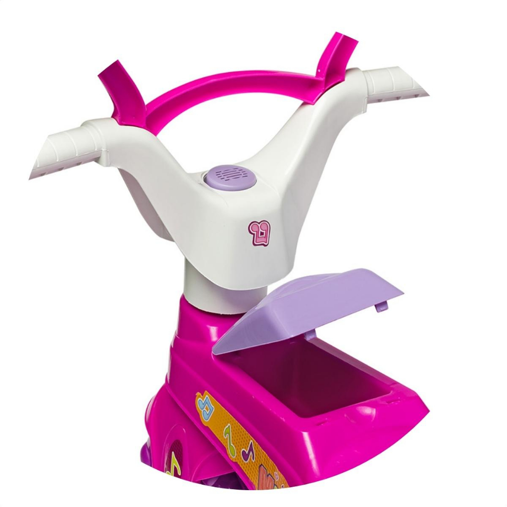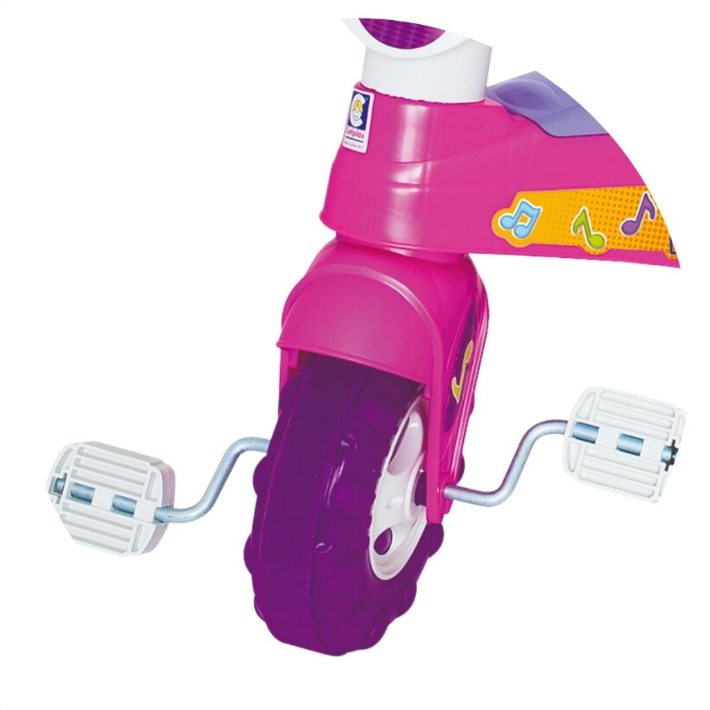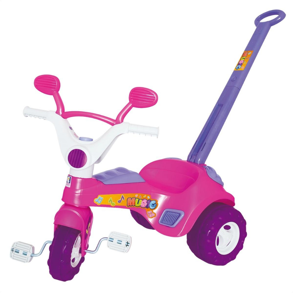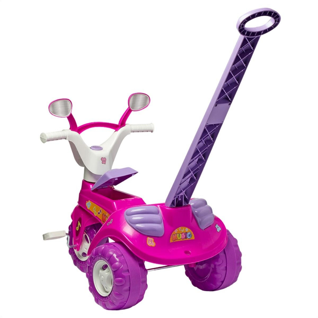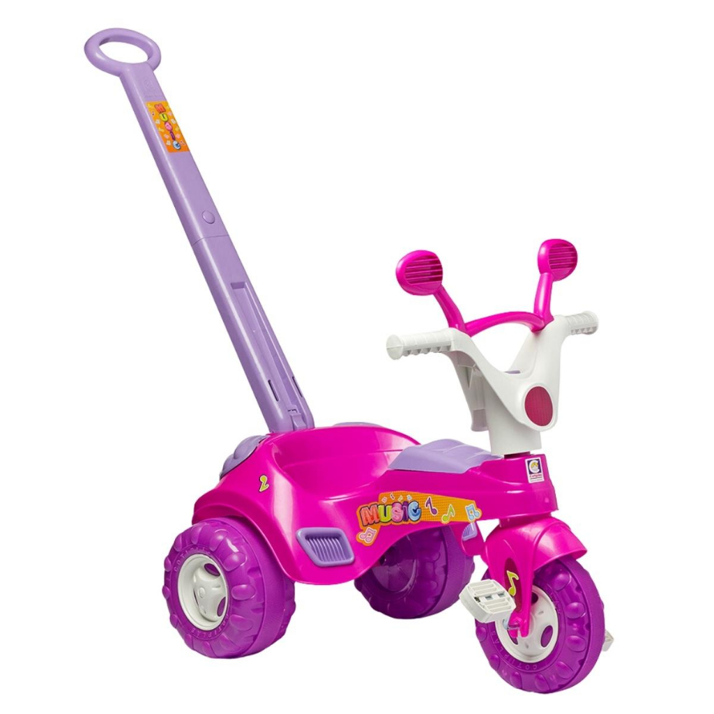 Triciclo Divertido para Bebê com Música Rosa e Haste Cotiplas