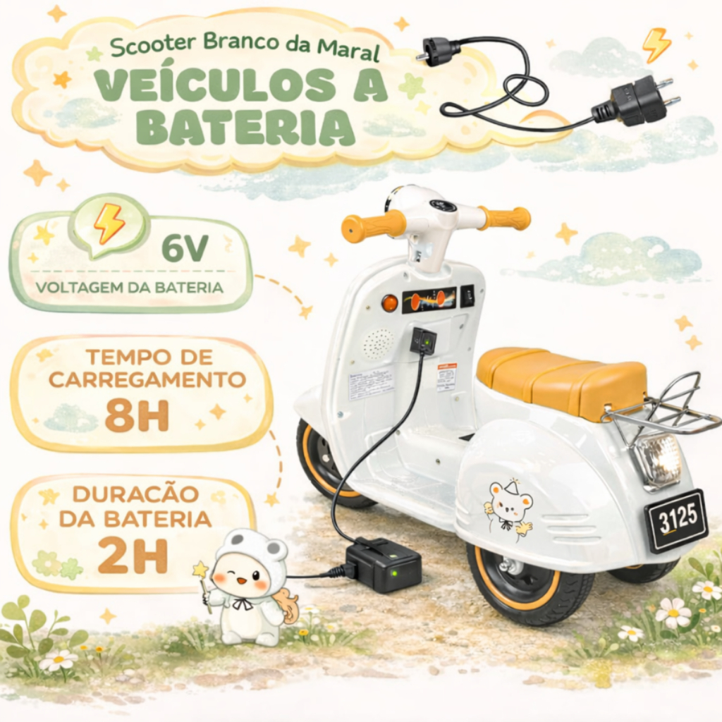 Triciclo Infantil 6V Bivolt Elétrico Scooter Com Som Luz Baú Pimp